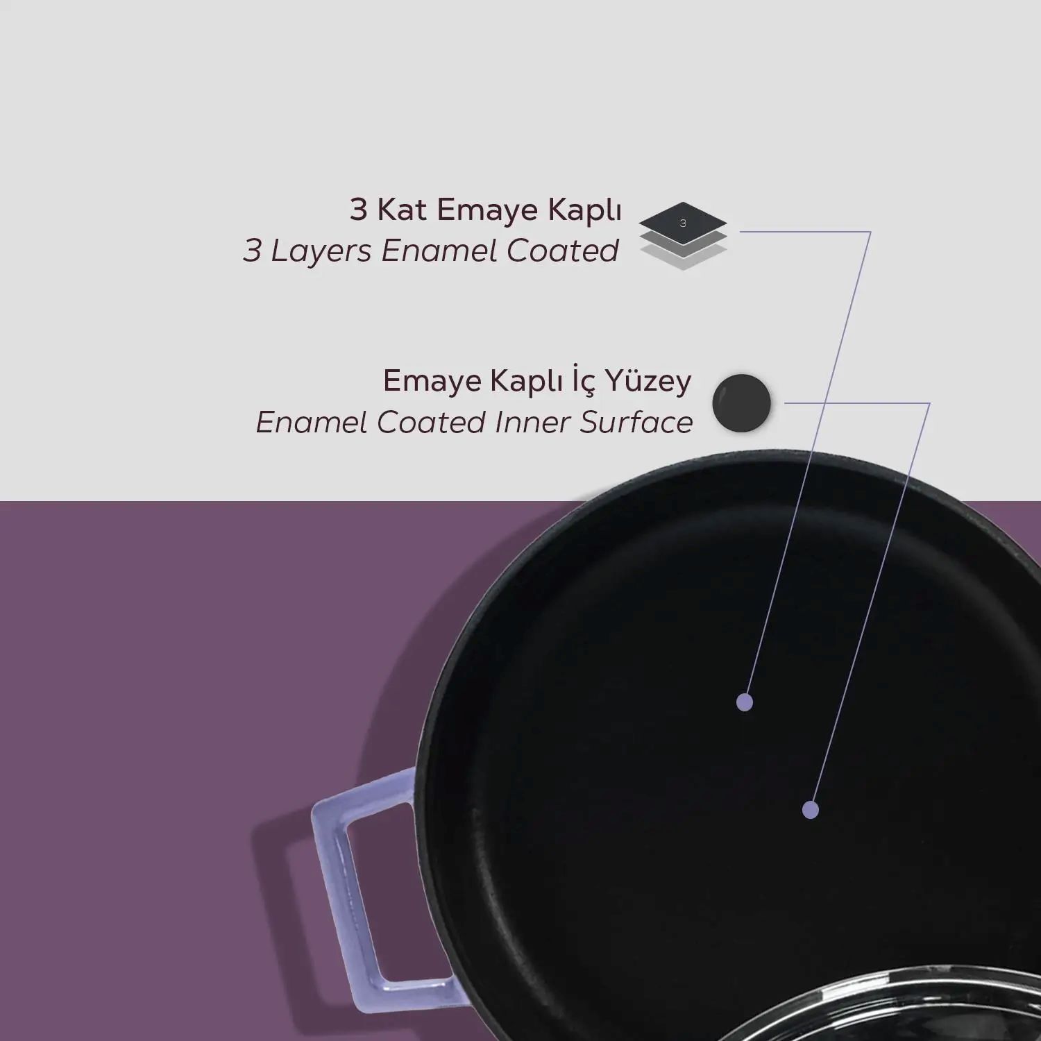 Стъкловидният емайл, материалът, използван за външната довършителни работи на съдовете от лава чугун, се получава чрез пръскане на стъклен прах при температури от 750 - 850°C. Стъкленият прах се придържа към повърхността на готварски съдове, създаващ защитен слой, който също помага за оптимално разпределение на топлината.