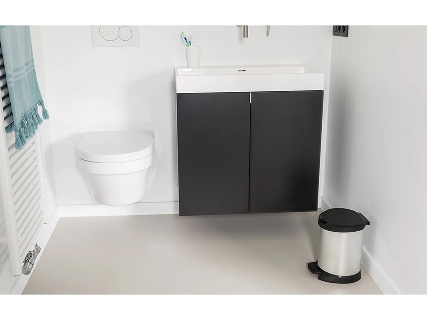 Благодарение на полукръглата си форма, кошчето за боклук може да се постави до стената, като по този начин се пести наличното пространство.