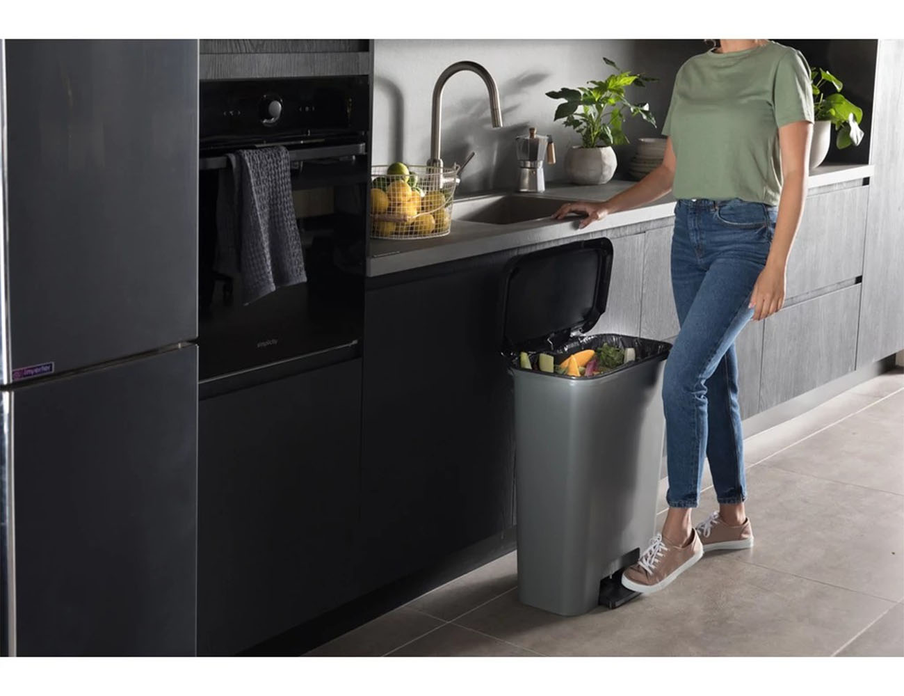 Кошчето за боклук се отваря с помощта на практичен и широк педал , който се задейства с крак, като по този начин ръцете ви остават чисти.