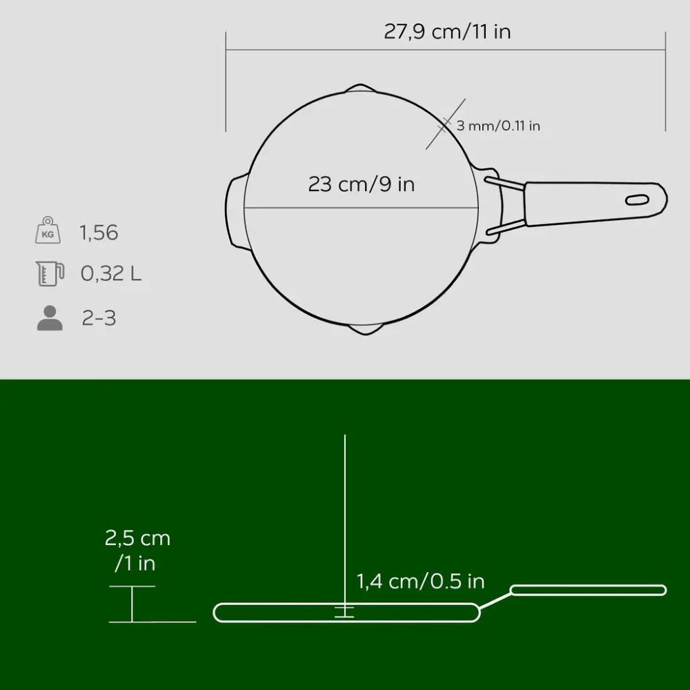 Rysy:Tloušťka základny je 3 mm, což umožňuje použití Lava nádobí na všech typech varných desek, včetně indukčních varných desek.