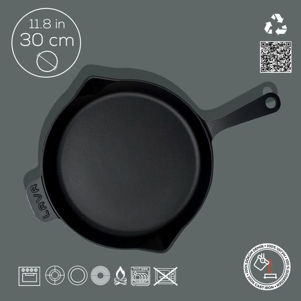 Kulatá pánev, značka Lava, vnitřní průměr 30 cm, objem 2,78 l,z litiny.