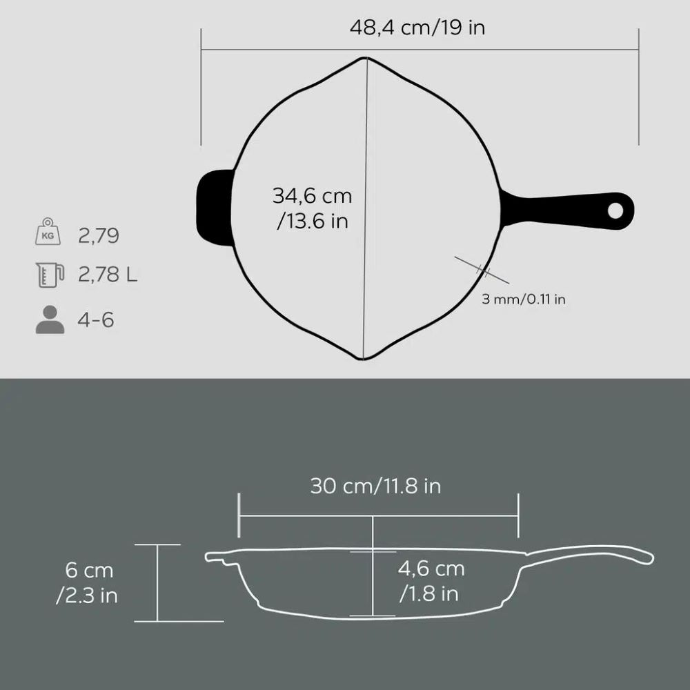 Ideální pánev pro přípravu 4 nebo 6 porcí.