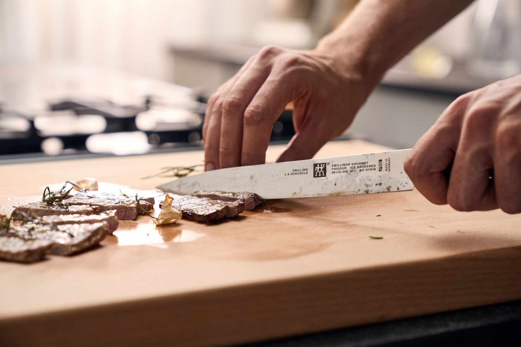 Krájecí nůž, délka čepele 20 cm, vyroben ze speciální nerezové oceli, odolný proti korozi a otřesům, značka Zwilling