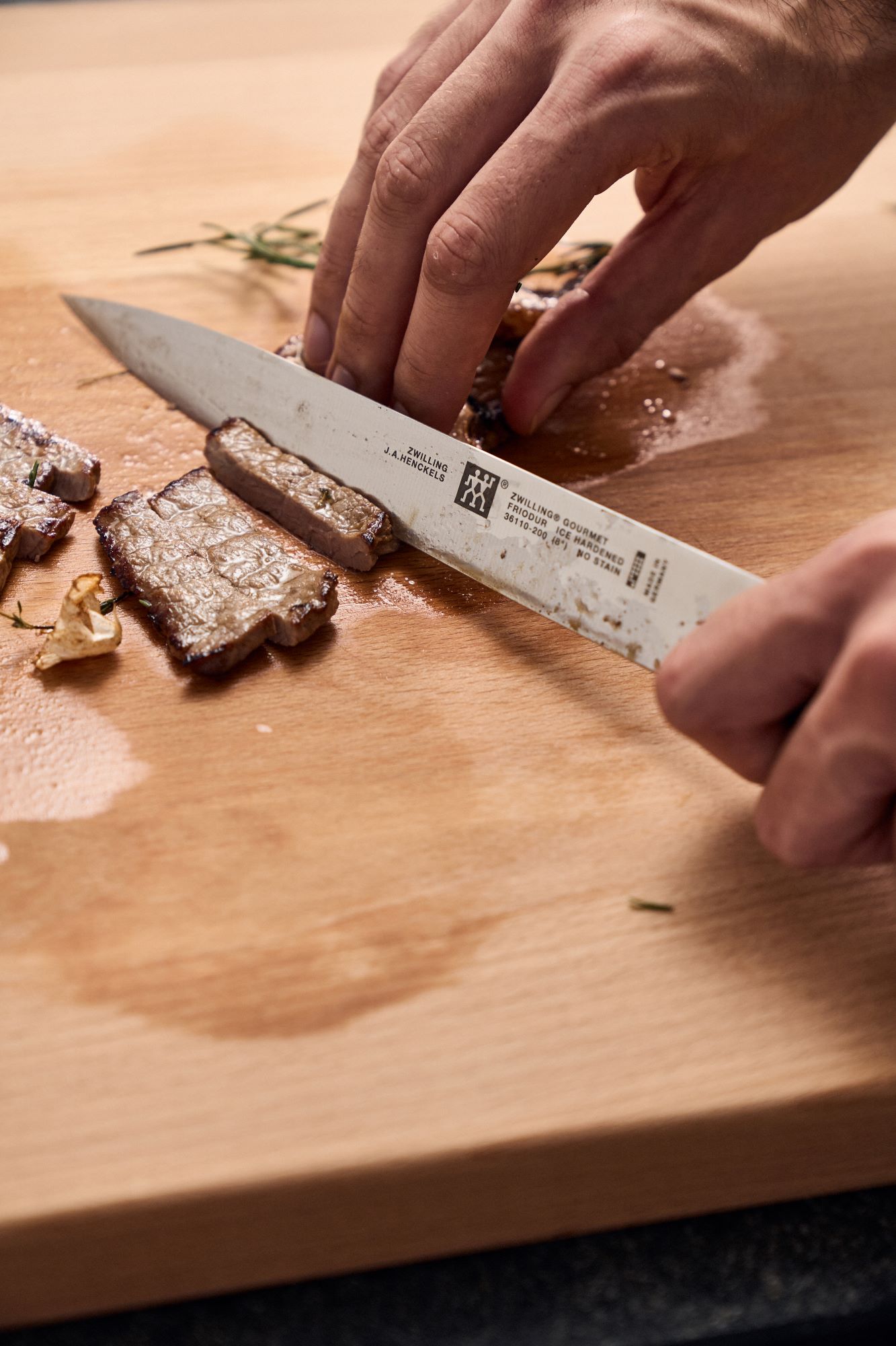 - Tenká čepel umožňuje dokonalé krájení masa;