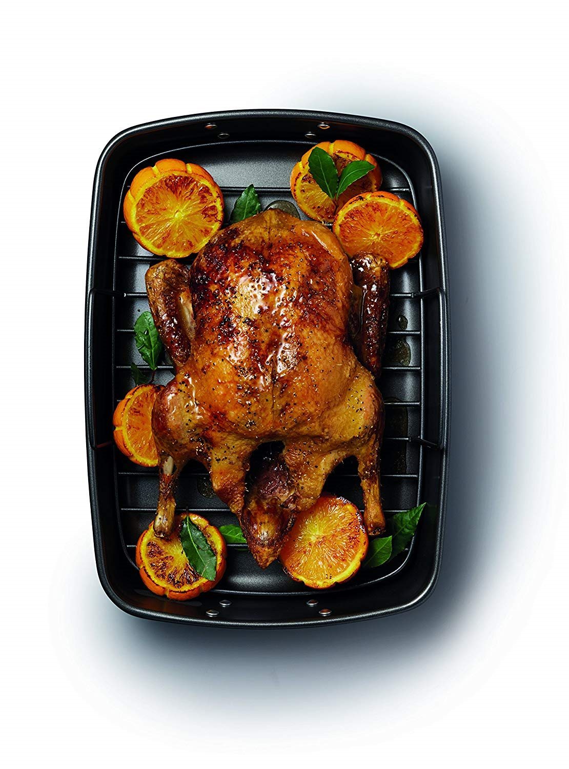 Pekáč s vyjímatelným grilem, rozměry 40 x 28 x 7,5 cm, vyroben z oceli s dvojitým antiadhezním povlakem, značka Kitchen Craft