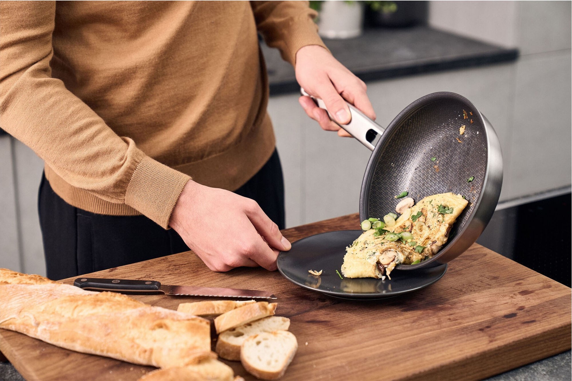 ZWILLING Joy Plus stegepanden kombinerer egenskaberne ved pander med slip-let-belægning med pander uden slip-let-belægning. Stegepanden er velegnet til både delikat stegning og intens bruning. Fisk, æg og grøntsager kan nemt tilberedes i denne stegepande.