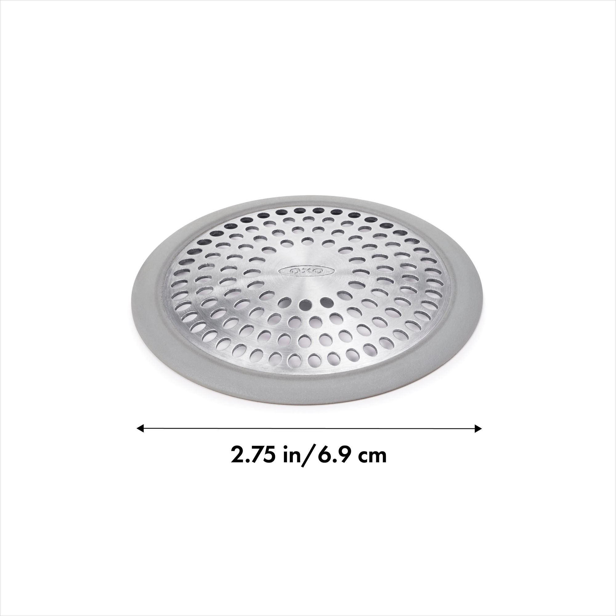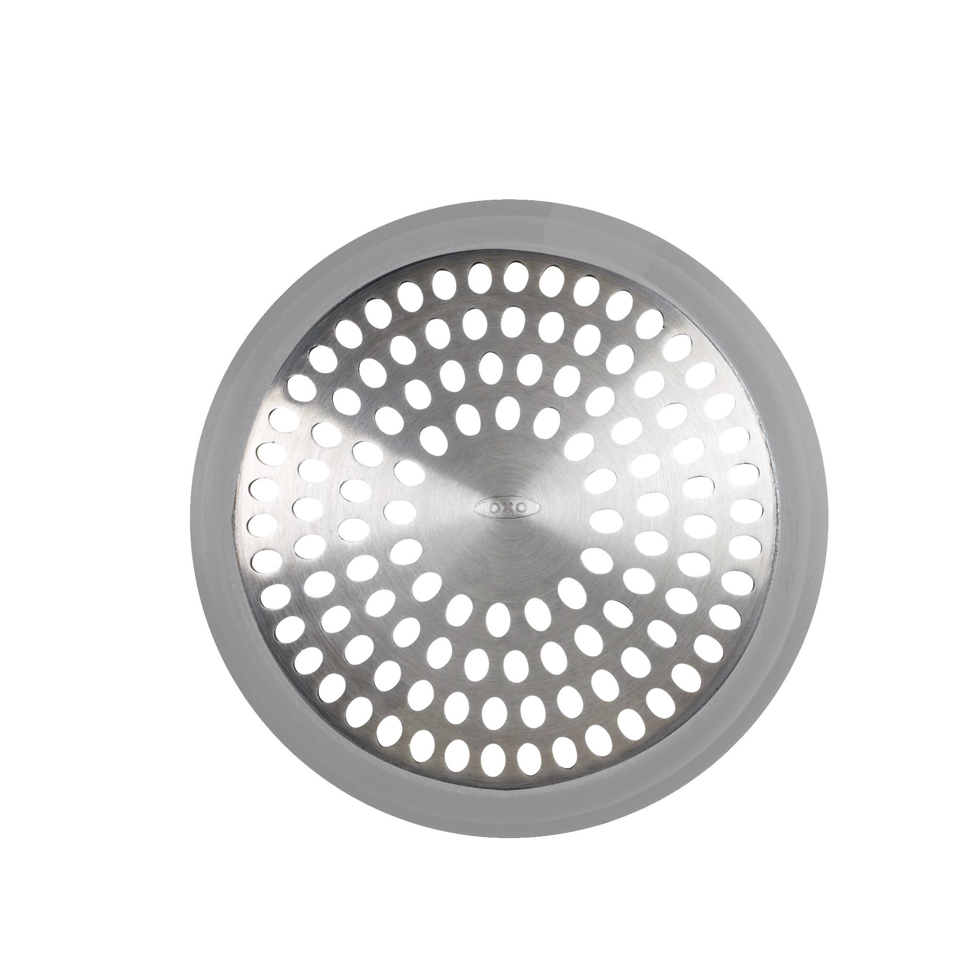 Ablaufschutzsieb für Badewanne, hergestellt von OXO, aus hochwertigem, rostfreiem Edelstahl. Hält Badewannenabflüsse frei von Haaren und anderen Ablagerungen, die Verstopfungen verursachen.