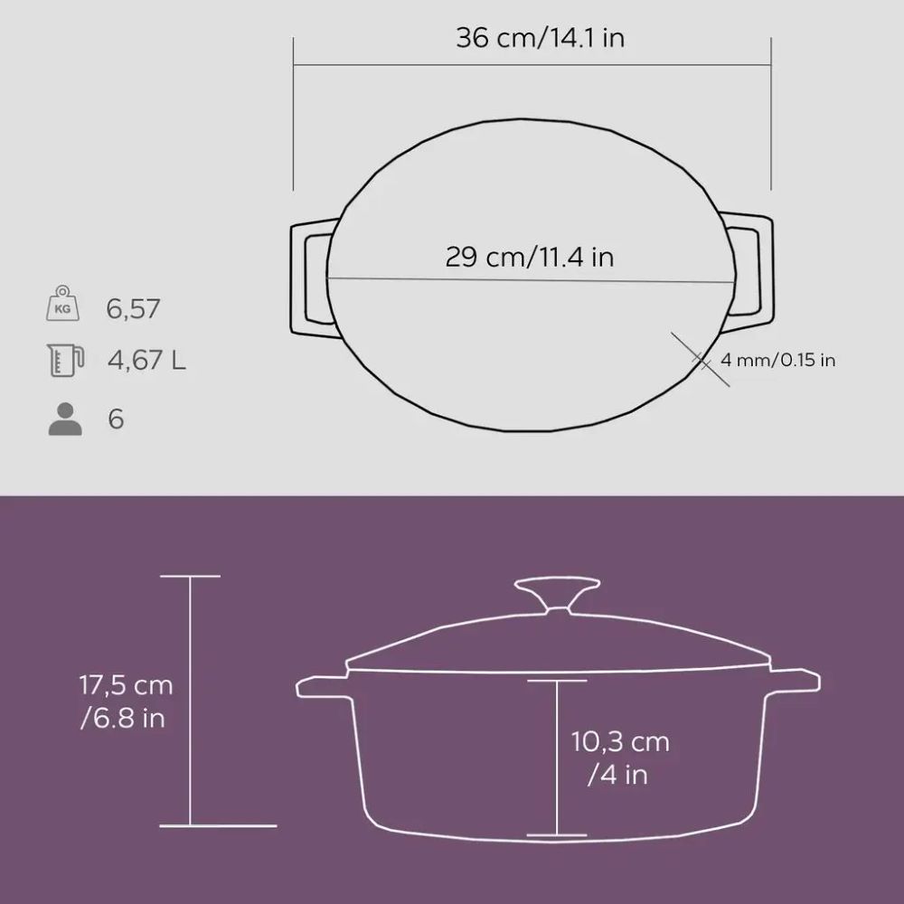 Die Bodenstärke beträgt 6 mm, wodurch das Lava -Kochgeschirr auf allen Herdarten, einschließlich Induktionskochfeldern, verwendet werden kann.