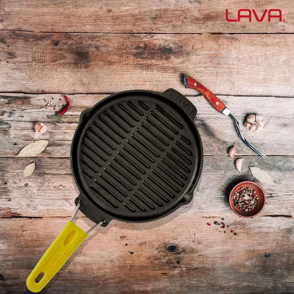 Runde Grillpfanne, 23 cm, gelber Griff - Marke LAVA