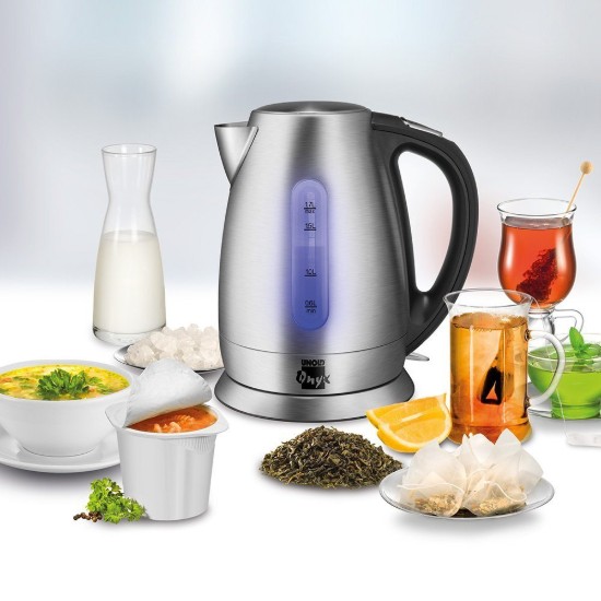 BLITZ KOCHER Onyx der Marke Unold hat eine beachtliche Leistung von 2200 W, die das Wasser aus dem 1,7-Liter-Behälter in nur wenigen Minuten zum Kochen bringt. Der Wasserkocher kann von der 360°-Basis abgenommen werden (kann aus jeder Richtung an der Basis befestigt werden), um das Servieren zu erleichtern.