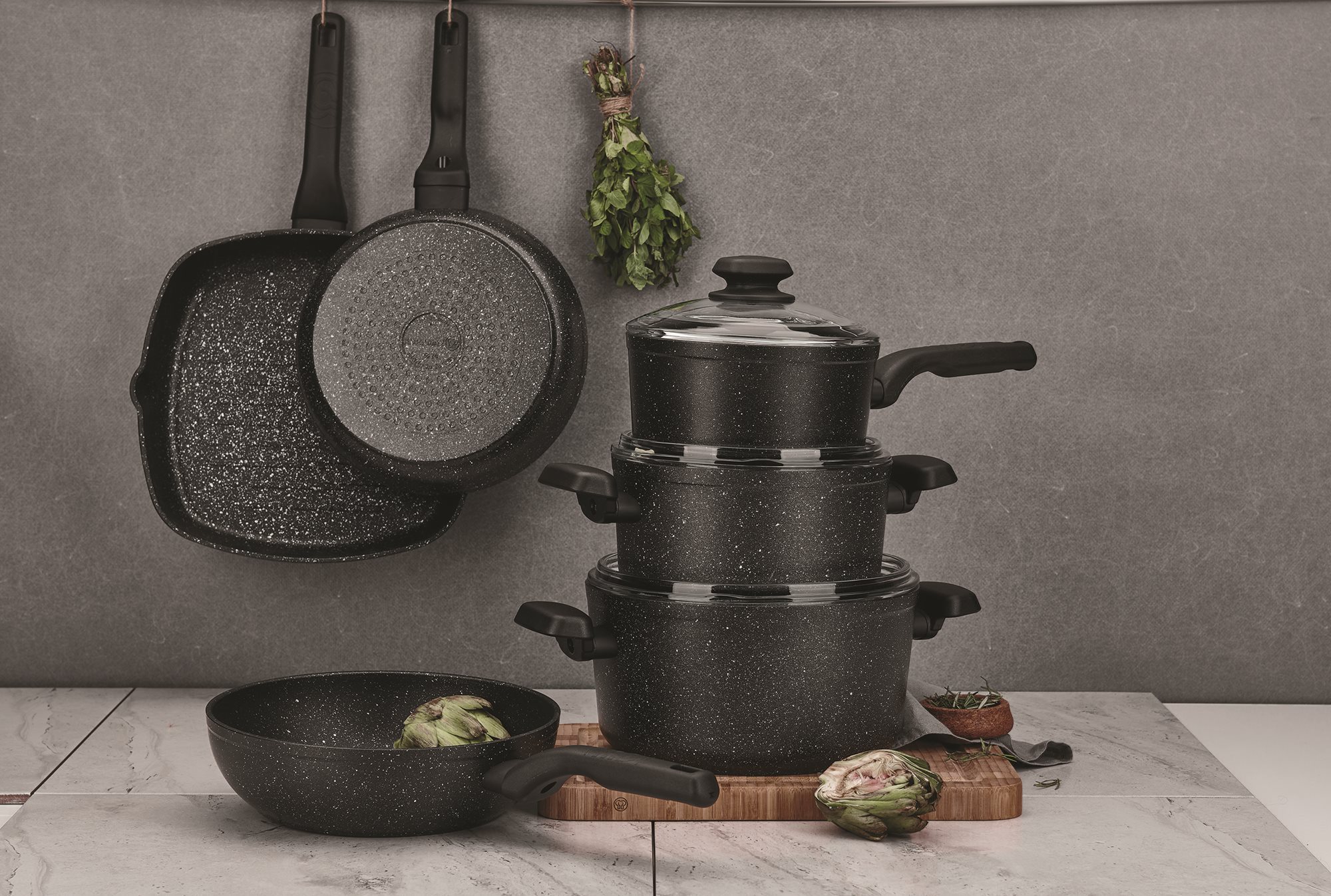 Αυτό το προϊόν είναι μέρος της σειράς Ornella που περιλαμβάνει είδη από ανακυκλωμένα και ανακυκλώσιμα υλικά, η οποία χρησιμοποιεί μια φιλική προς το περιβάλλον τεχνολογία, με αντικολλητική, ανθεκτική στις γρατσουνιές επίστρωση PTFE στο εσωτερικό και εξωτερικό στρώμα σιλικόνης, ανθεκτικό στις υψηλές θερμοκρασίες.