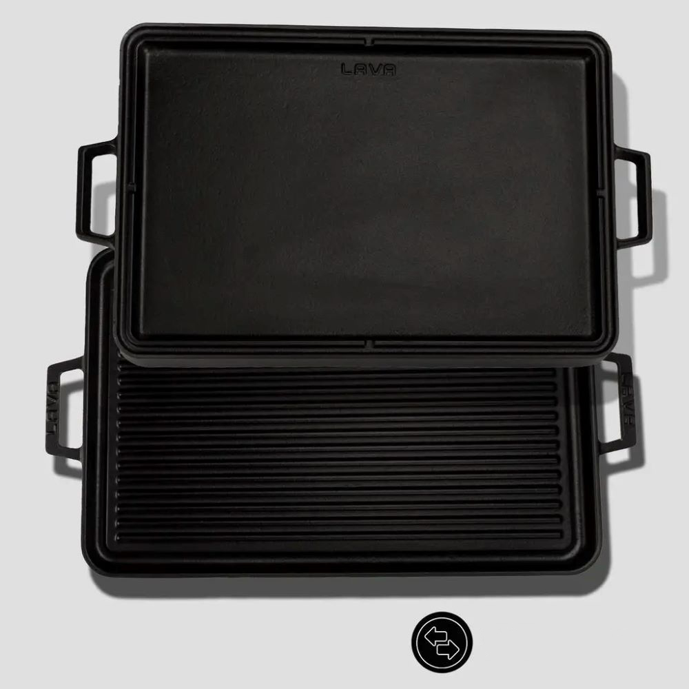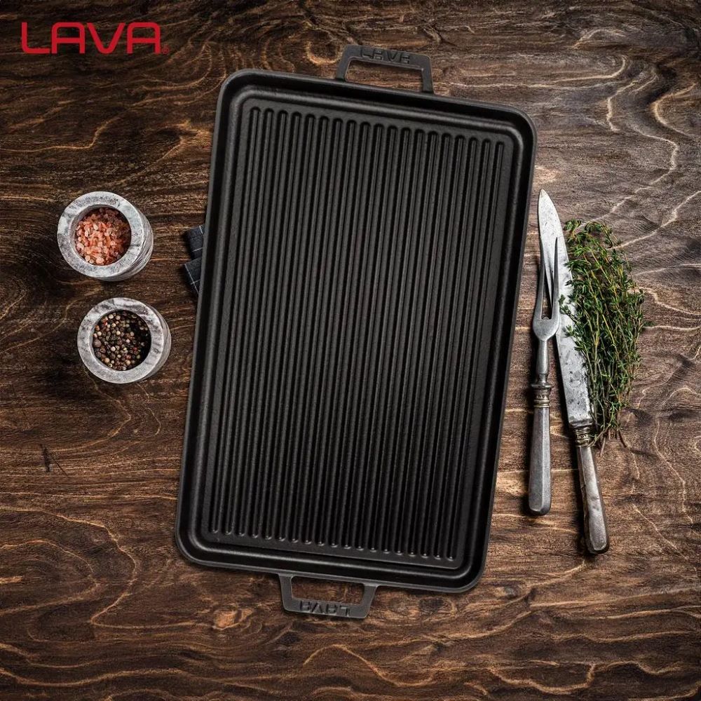 Η γεύση των πιάτων που μαγειρεύονται με LAVA έγκειται στο βάρος της LAVA . Με την καινοτόμο τεχνολογία και τον σχεδιασμό της, η διπλή σχάρα LAVA διατηρεί τη θερμότητα και την κατανέμει ομοιόμορφα. Χάρη στην πολυλειτουργικότητα της σχάρας, μπορείτε να μαγειρέψετε λαχανικά στην επίπεδη πλευρά ή να μαγειρέψετε κρέας στην ανάποδη!