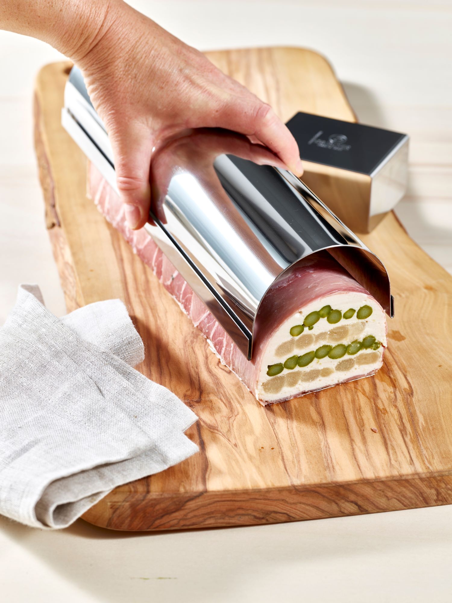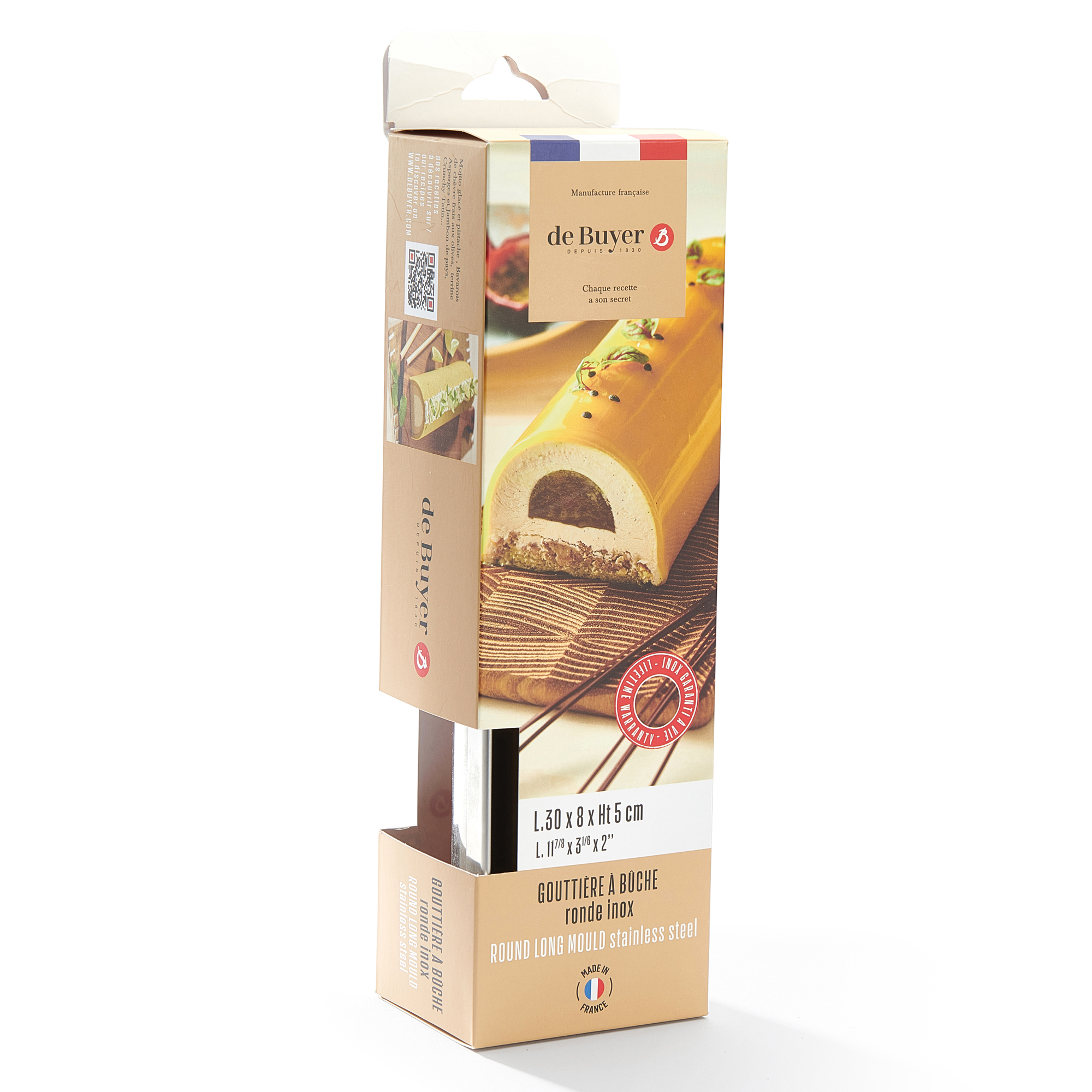 Yule φόρμα για τα Χριστούγεννα για την παρασκευή πατέ και μους (λαχανικών, κρέατος ή ψαριού), foie gras , παγωτού, ελβετικών ρολών, κέικ κρέμας ή διακοσμήσεων σοκολάτας, κατασκευασμένη από ανοξείδωτο ατσάλι, μάρκας de Buyer