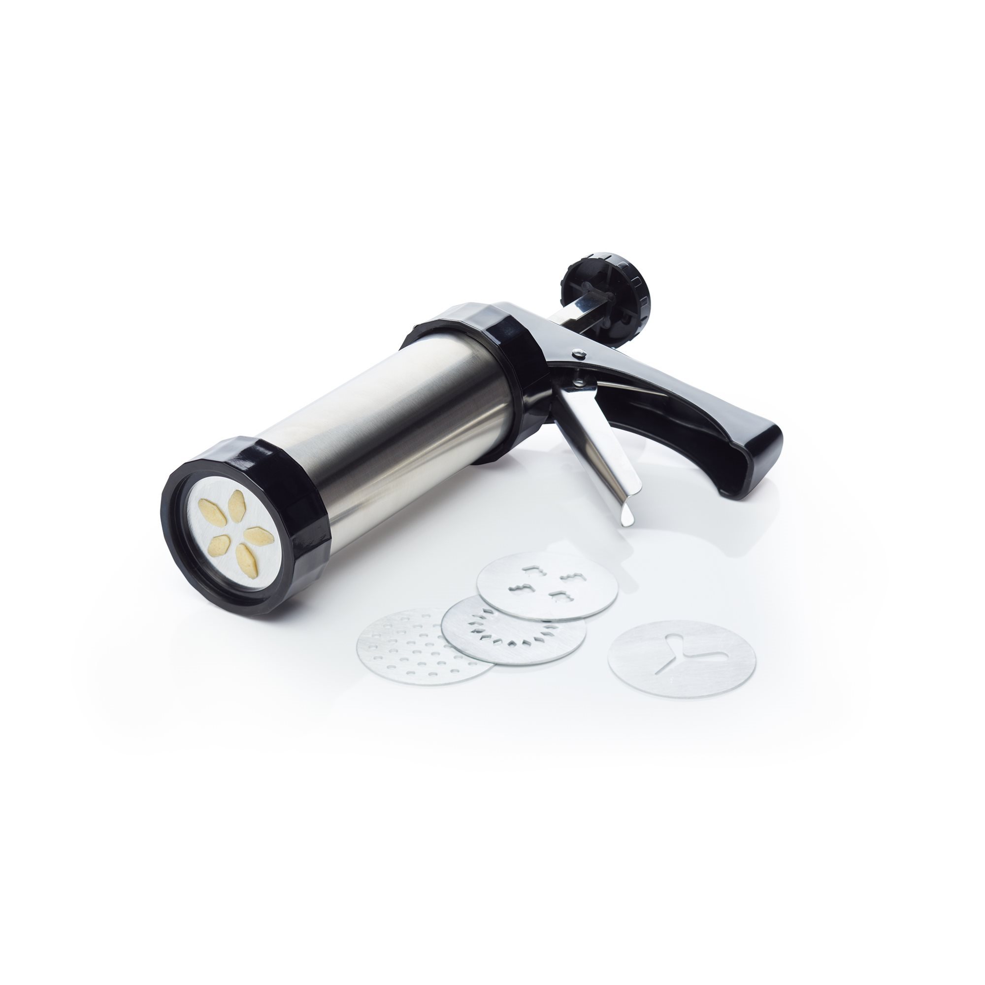 Έχει σχεδιαστεί για τη διακόσμηση διαφόρων τύπων κέικ, από τη μάρκα Kitchen Craft. Περιλαμβάνει 1 σύριγγα σε σχήμα πιστολιού, μήκους 25 cm, με ρυθμιζόμενη σκανδάλη, 8 κεφαλές από ανοξείδωτο χάλυβα και 13 φόρμες κατασκευασμένες για ανοξείδωτο χάλυβα, για μπισκότα. Όλα αποθηκεύονται σε ένα ειδικό κουτί.