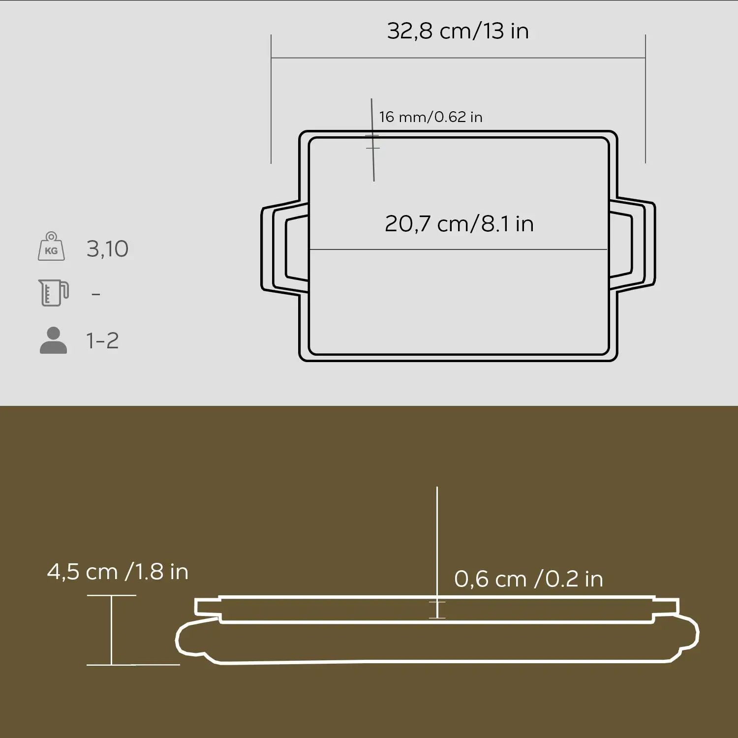 Διαστάσεις εσωτερικής εστίας: 20,7 x 13,7 x 0,6 εκ.