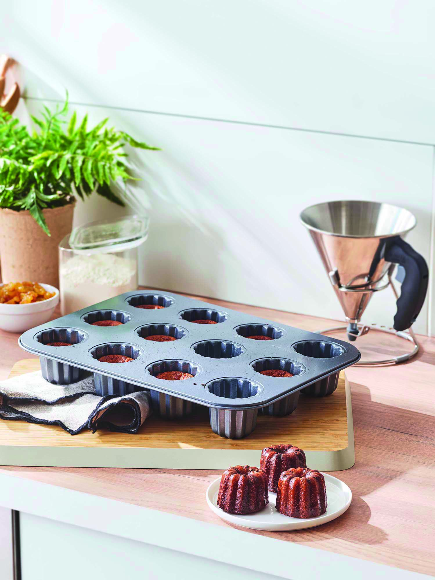 12-compartment canneles tin, made of steel, with non-stick coating, de Buyer brand.