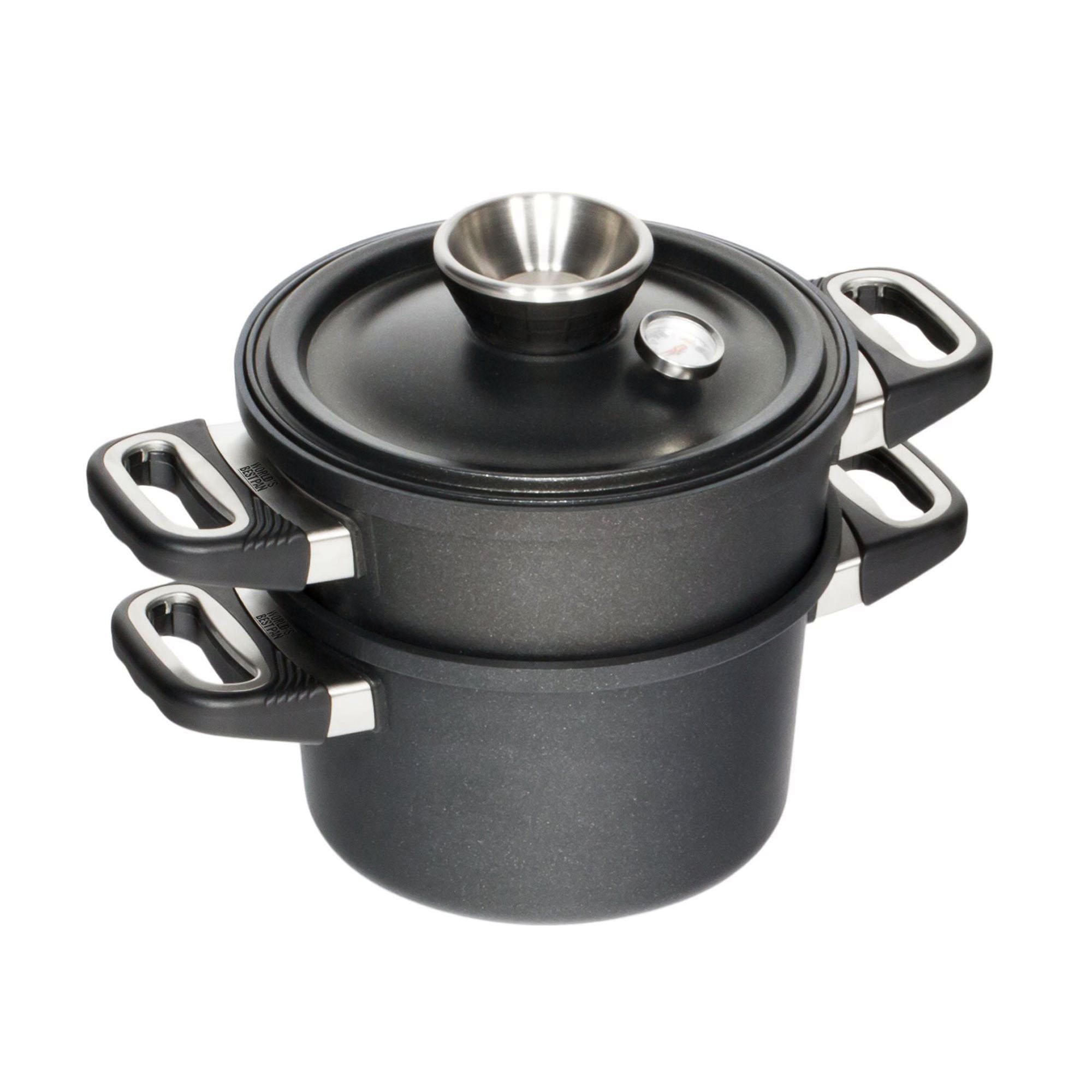 3-piece steam cooking set "Waterless Cooking", produced by AMT Gastroguss, made from aluminium with Lotan® non-stick coating.