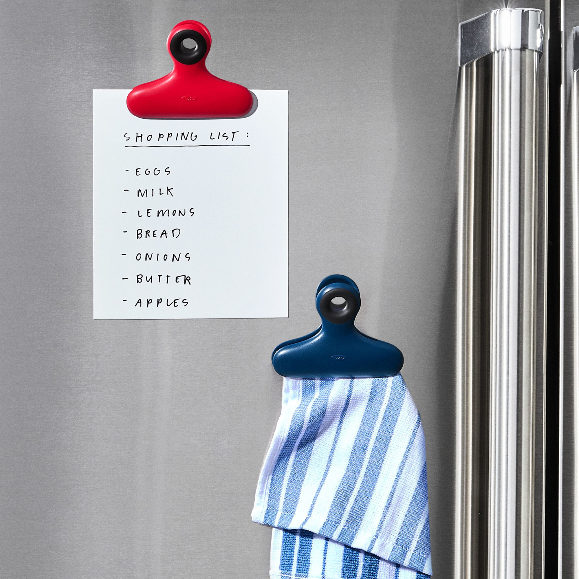 These clips provide the tightest grip ever, have a sturdy plastic construction and soft, comfortable handles. The magnet on the back allows them to be attached to the refrigerator or other metal surfaces.