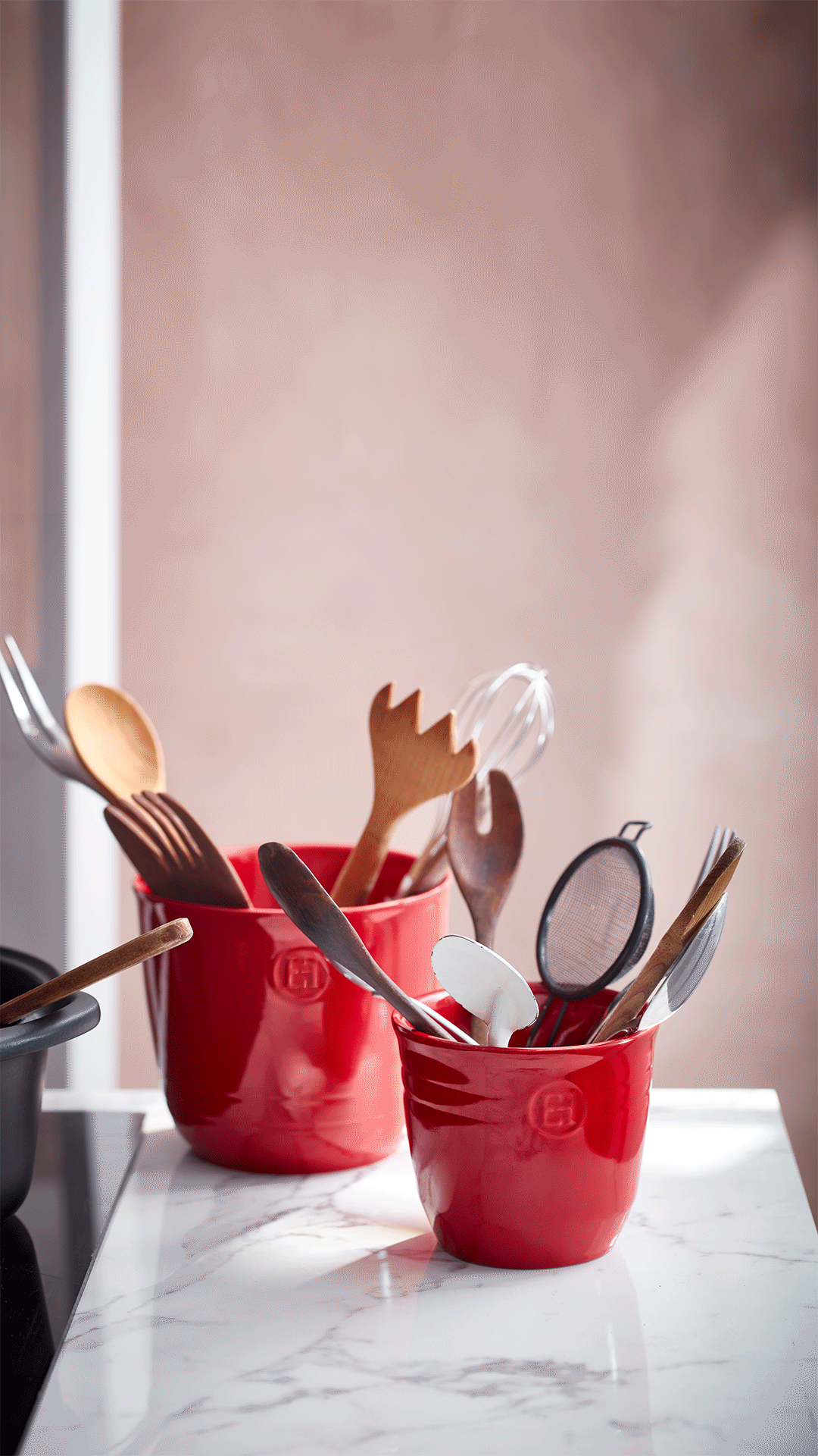 Add a touch of elegance to your kitchen while keeping your kitchen utensils organized, with the new kitchen utensil holder from Emile Henry. Combining durability with aesthetics, it serves as both a kitchen essential and a decorative countertop accessory, making it practical and attractive, even in a traditionally decorated kitchen.