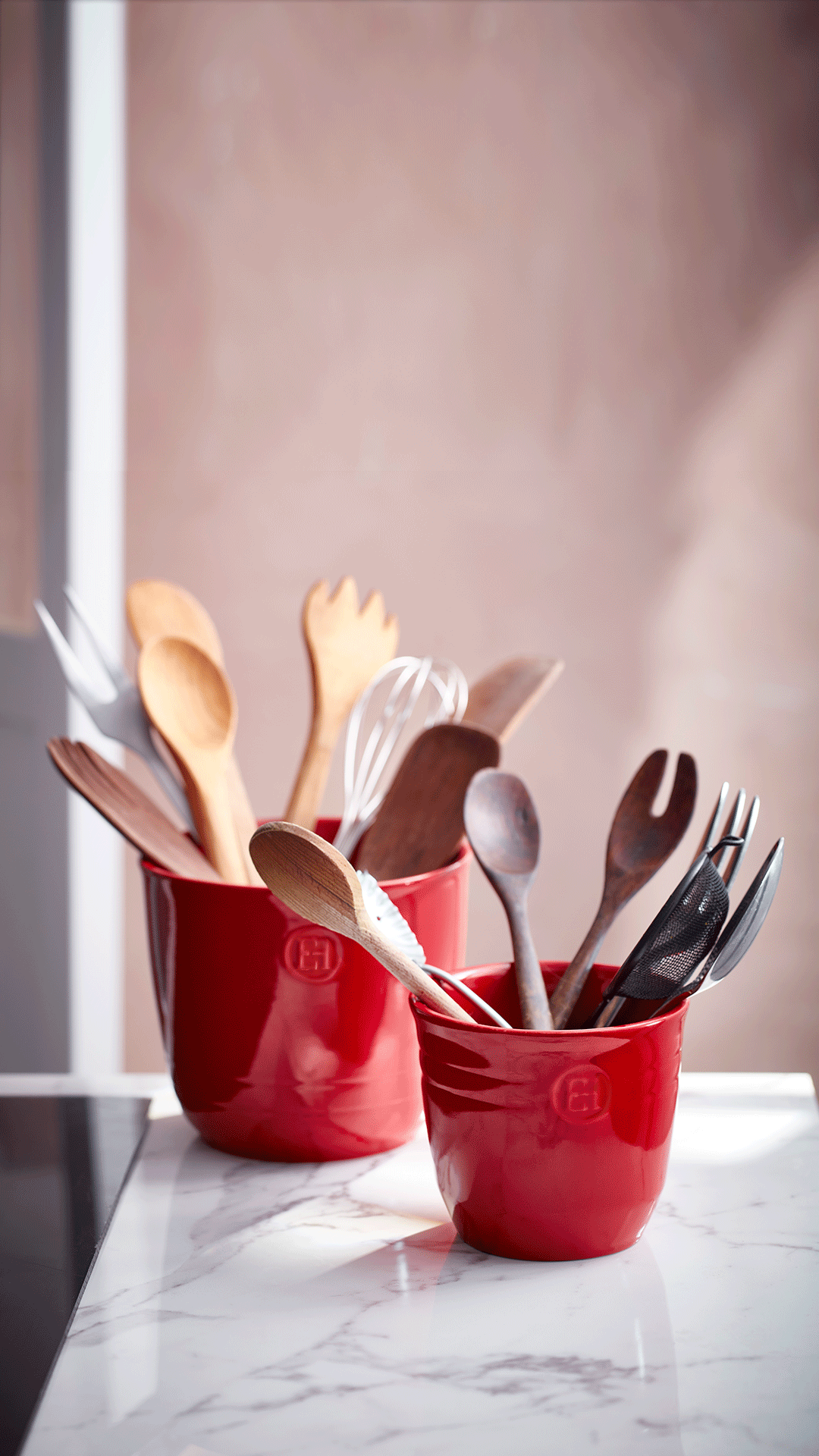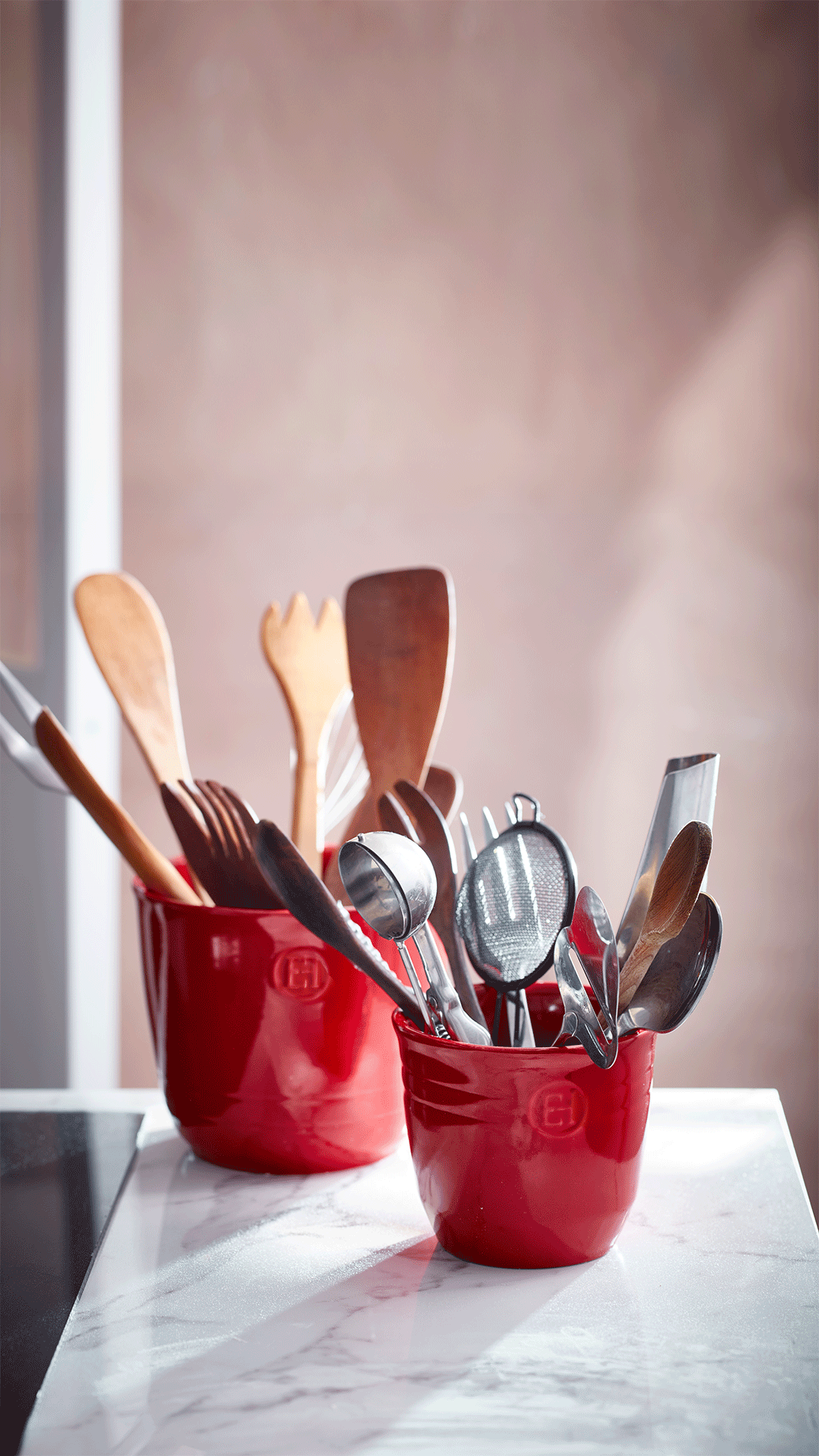 Add a touch of elegance to your kitchen while keeping your kitchen utensils organized, with the new kitchen utensil holder from Emile Henry. Combining durability with aesthetics, it serves as both a kitchen essential and a decorative countertop accessory, making it practical and attractive, even in a traditionally decorated kitchen.