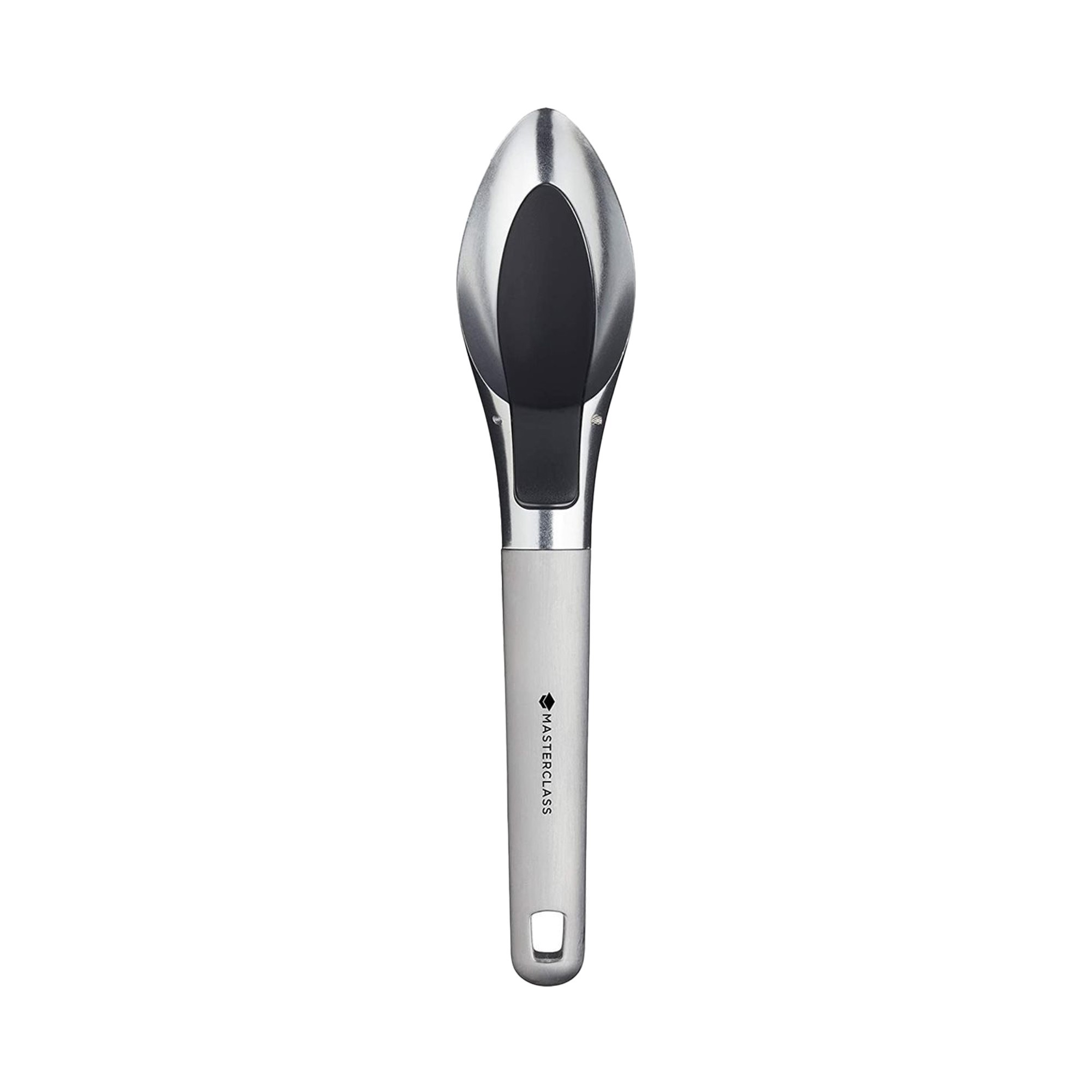 Ice cream scoop, from the MasterClass range, brand Kitchen Craft, with rounded tip and curved edges that slide easily through sorbet and ice cream. The scoop is made of aluminium and melts the frozen desserts as you serve.