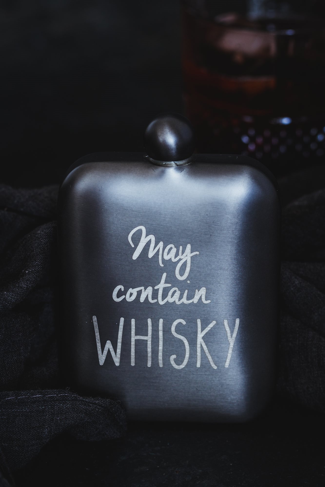 “May contain Whiskey” inscribed bottle, stainless steel, 175 ml - BarCraft