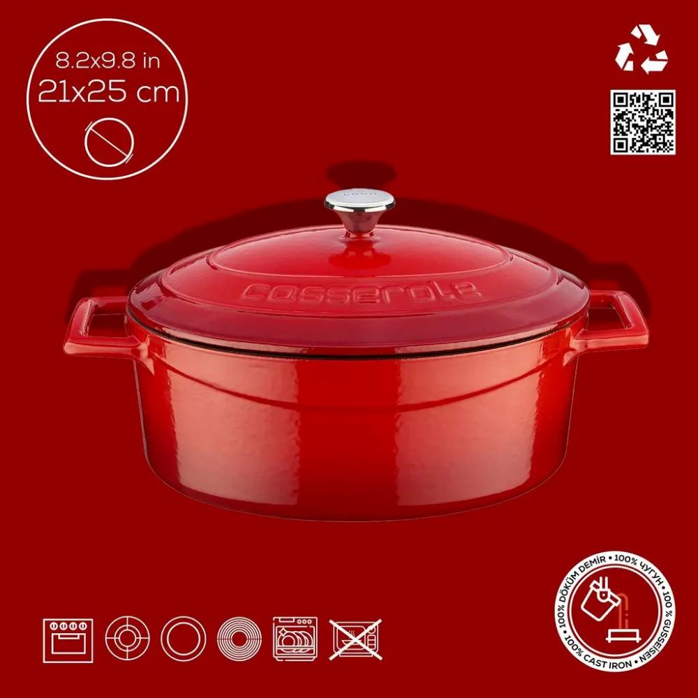 Oval-shaped saucepan, Lava brand, diameter of 25 cm, capacity of 3.2 l, manufactured from cast iron.