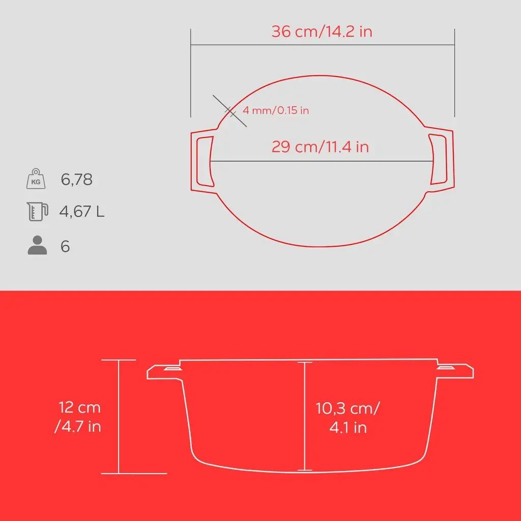 Oval casserole with lid, dimensions 23 x 29 cm, capacity of 4.7 l, made of cast iron, Lava brand