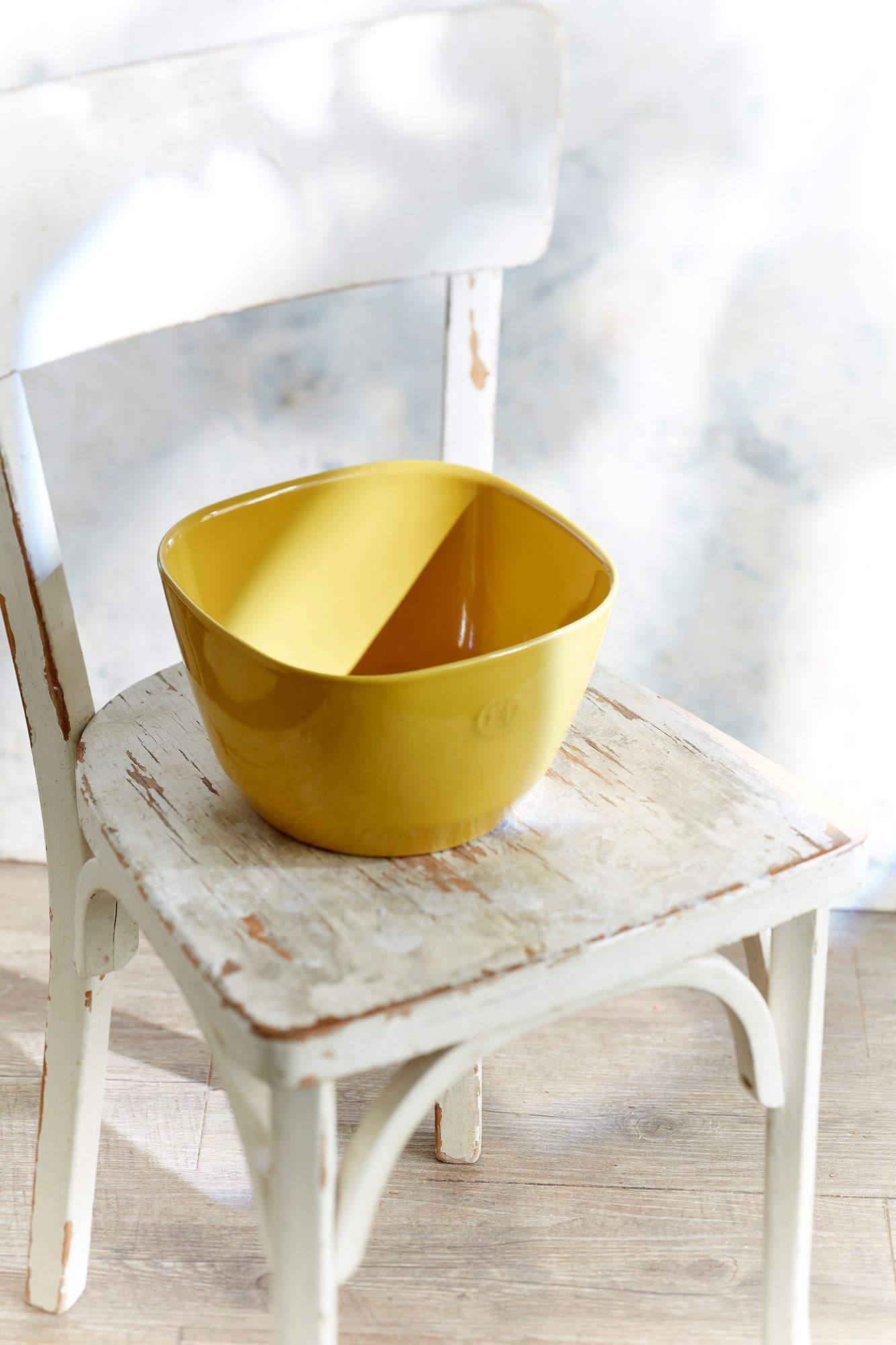The HR® (High Resistance) ceramic developed in the Emile Henry laboratories withstands temperatures of up to 270°C and distributes heat evenly across the entire surface of the dishware. The enamel used in finishing protects the product from scratches and chipping (you can cut directly in the bowl without leaving scratch marks), making it dishwasher-safe.