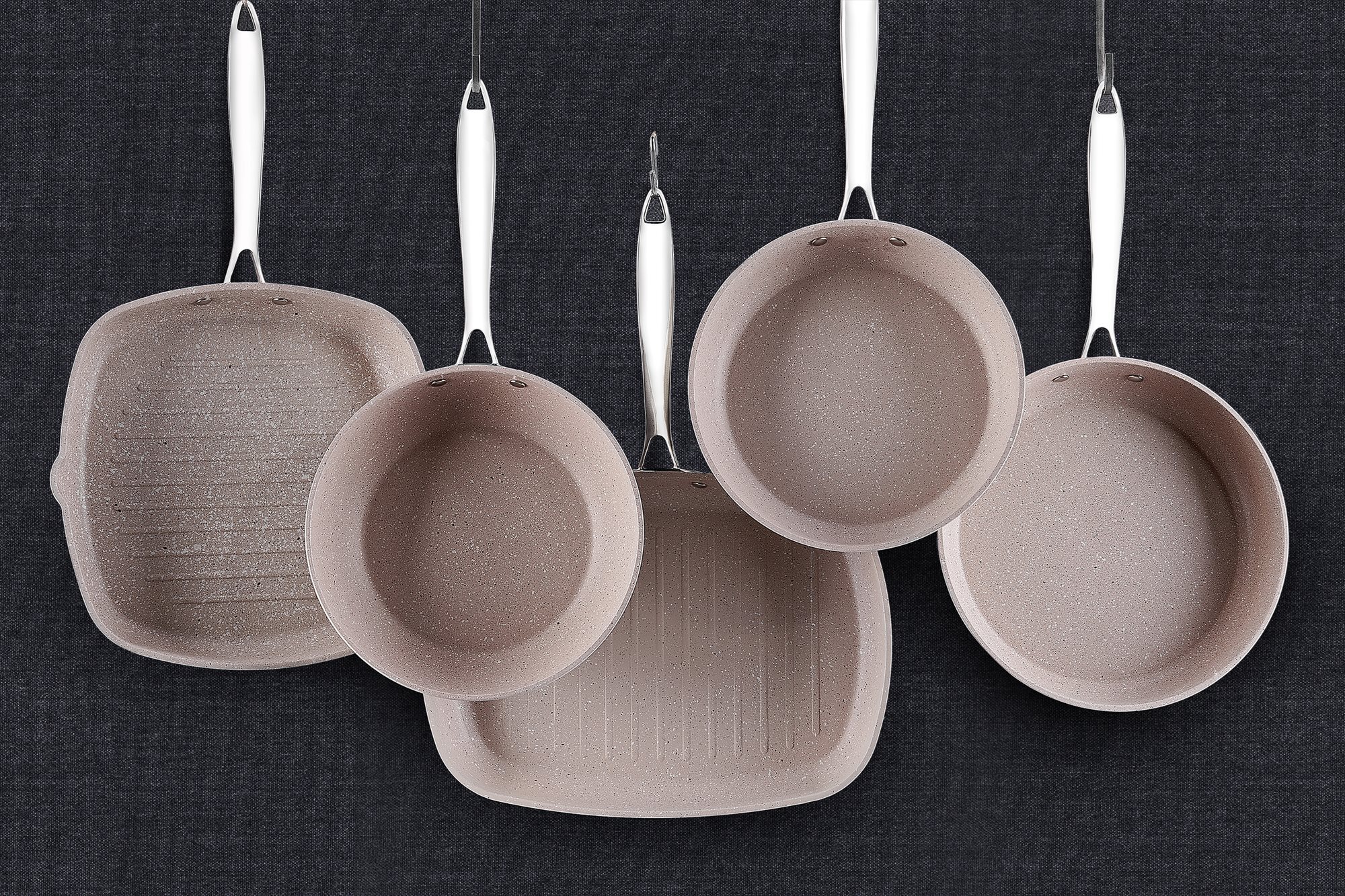 The Granita range cookware are made from recycled and recyclable materials, using an eco-friendly technology, with non-stick and scratch-resistant PTFE coating on the inside, and outer silicone layer which is resistant to high temperatures.