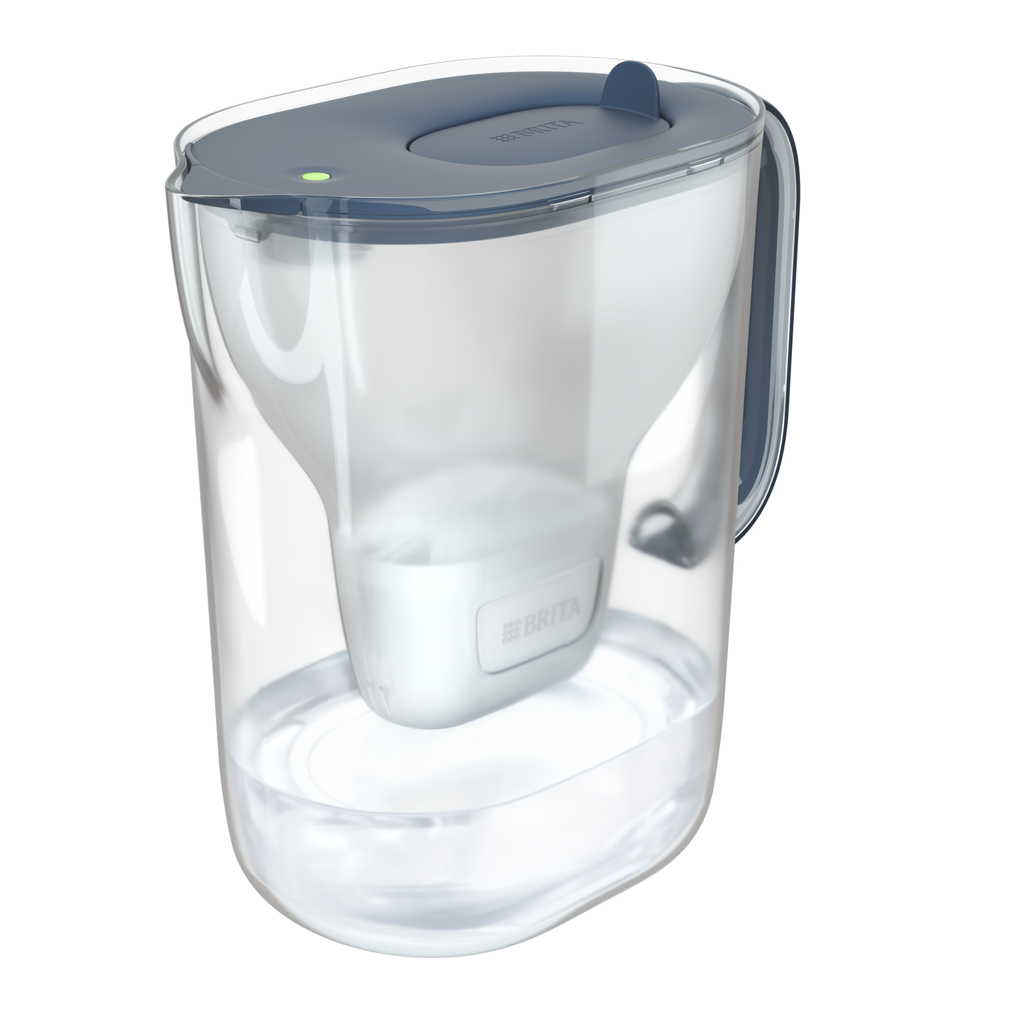 The jug is equipped with a BRITA MAXTRA PRO filter cartridge, an improved version of the original MAXTRA+.