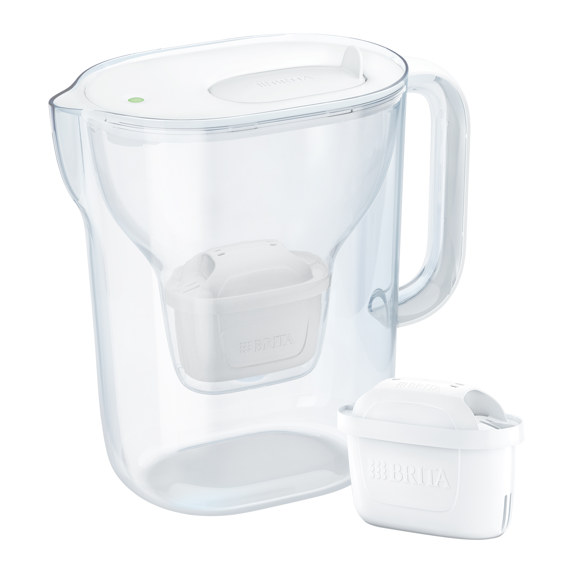 The jug is equipped with a BRITA MAXTRA PRO filter cartridge, an improved version of the original MAXTRA+.