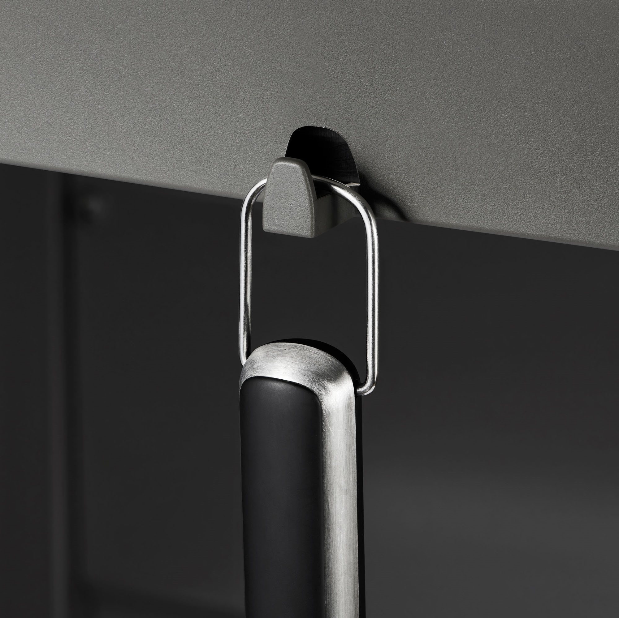 El mango garantiza un agarre cómodo y antideslizante, y el anillo colgante permite guardar cerca de la parrilla.