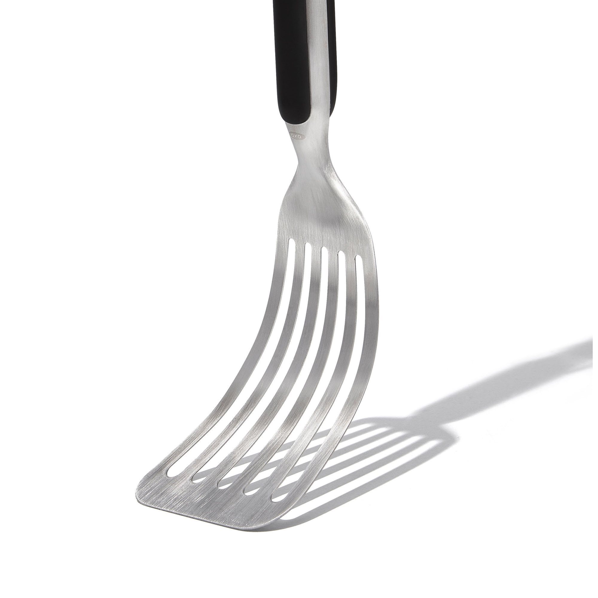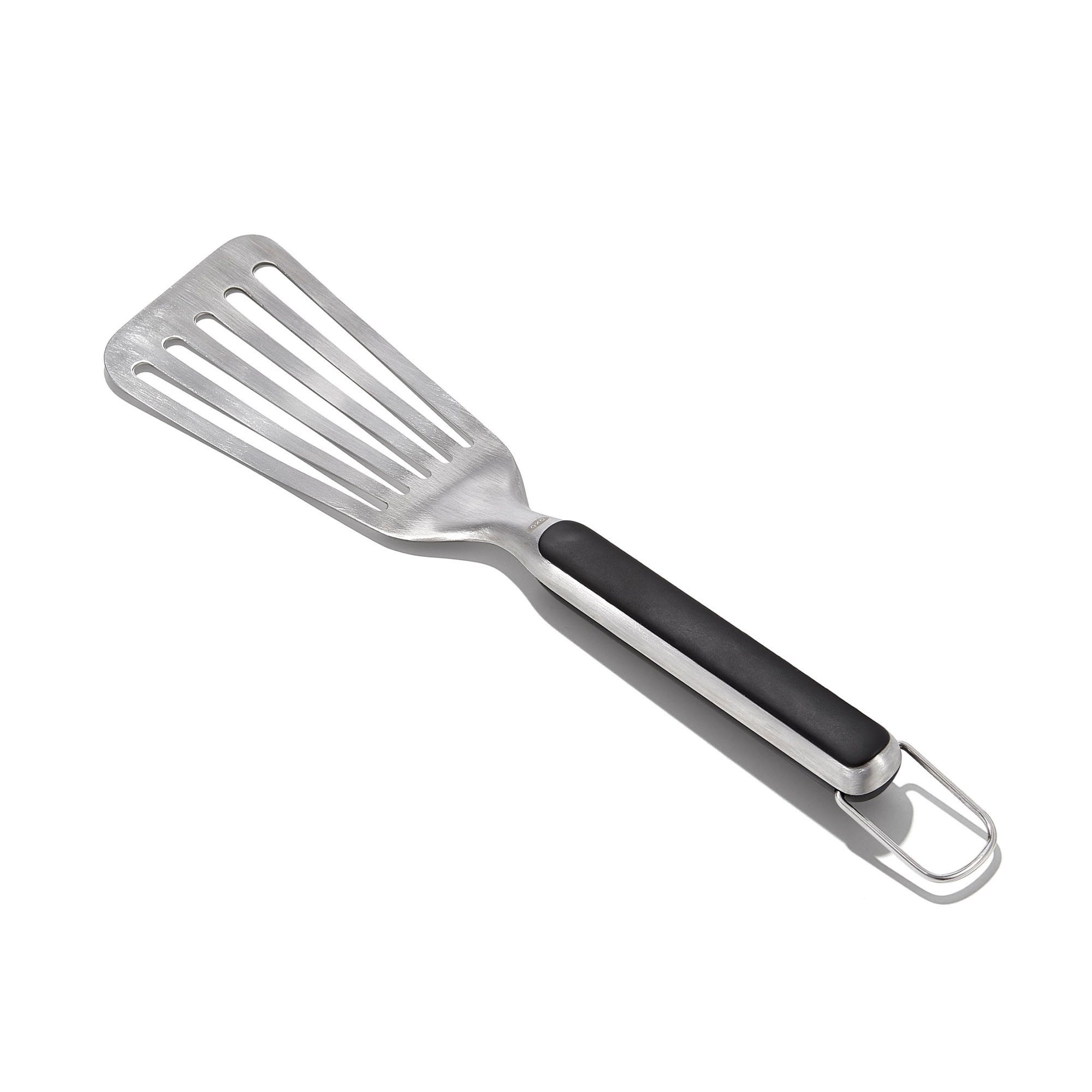 La espátula a la parrilla "Good Grips", producida por OXO, hecha de acero inoxidable, te ayuda a preparar filetes de salmón, chuletas de cerdo gruesas o hamburguesas jugosas.