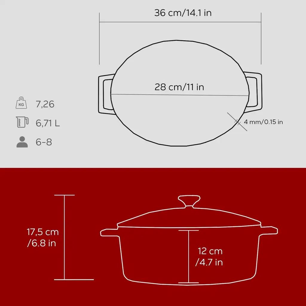 Kastrul, Lava bränd, läbimõõt 28 cm, mahutavus 6,7 l, valmistatud malmist.