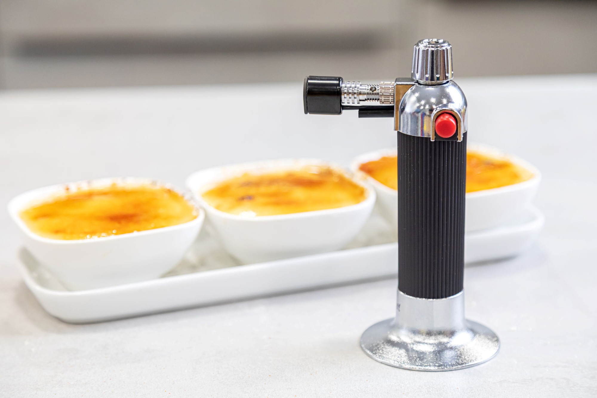 Ideaalne toode kasutamiseks selliste retseptide nagu Creme Brulee või Tarte Tatin lõpetamisel. Nakkuv korpus, reguleeritav leek, pieso-elektriline kohene süüde, kroomitud liitmikud, taastäidetav paak ja leek, mis põleb iga nurga all.