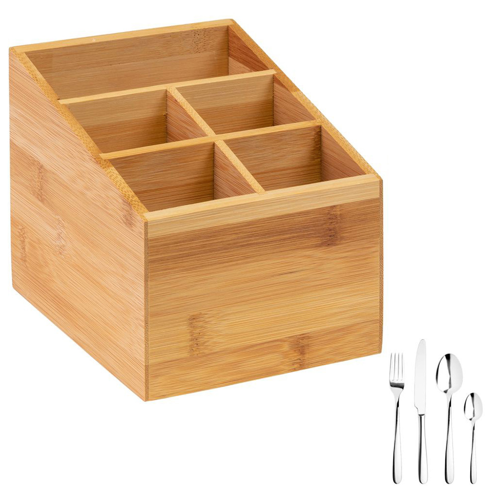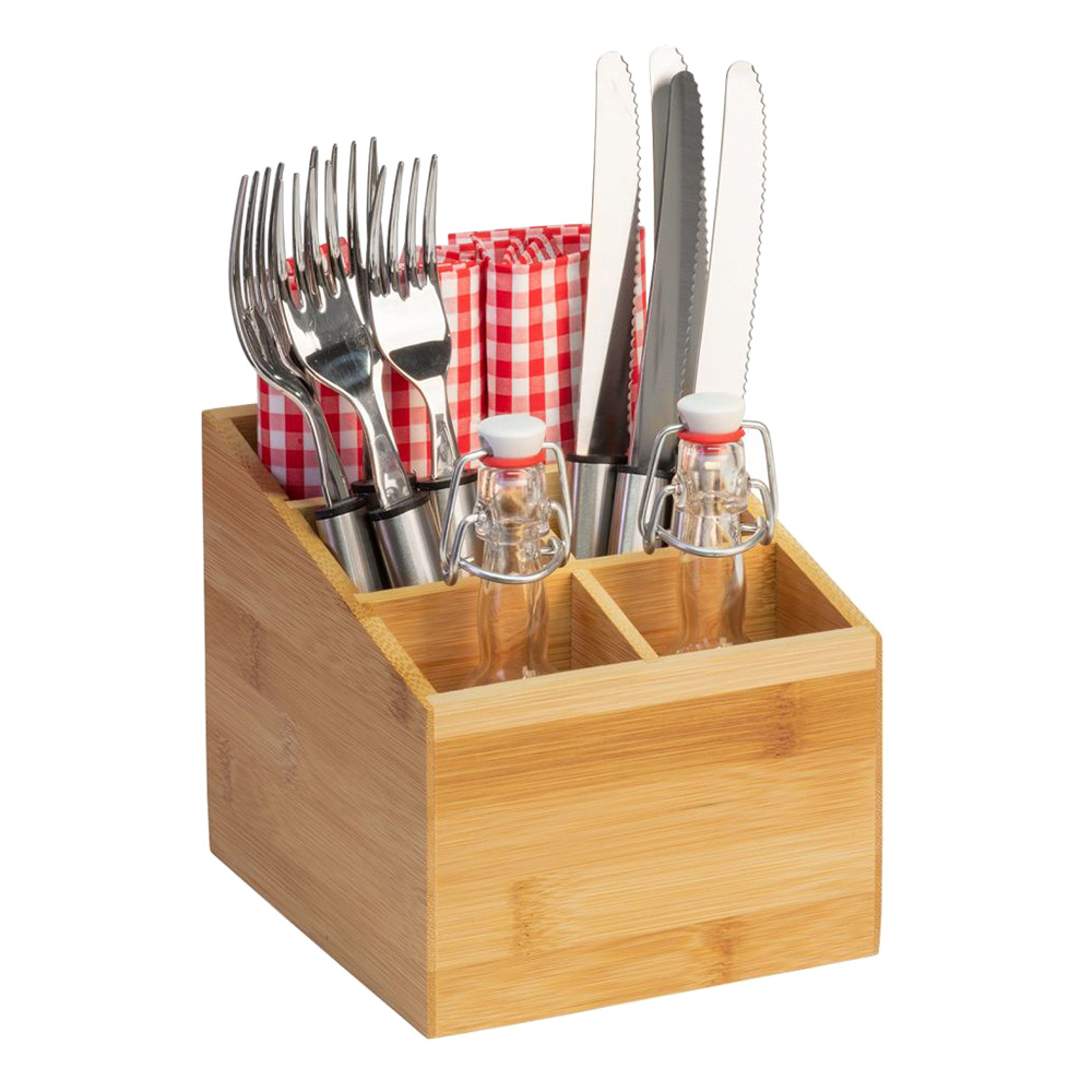 See atraktiivne bambusest söögiriistade korraldaja sobib igasse kööki. See on ideaalne aksessuaar söögiriistade, vürtside, salvrätikute ja palju muu hoidmiseks.