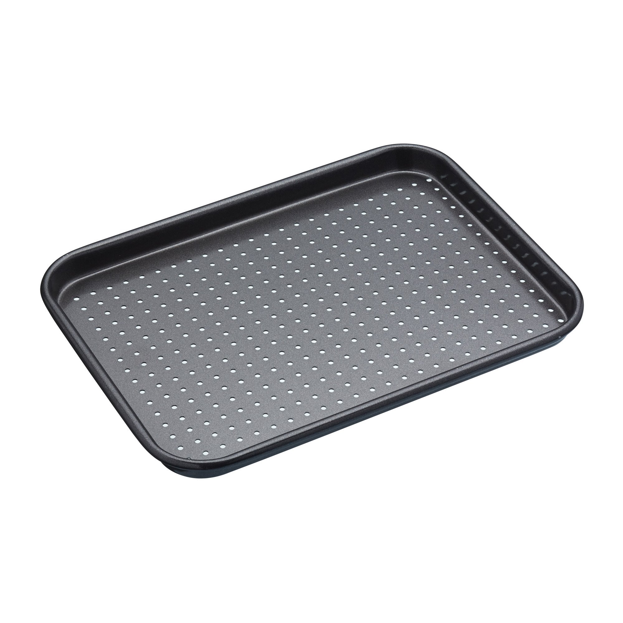 Tarjottimessa on aukot hyvää ilmankiertoa varten, joten se sopii erittäin hyvin rapeille ruoille.