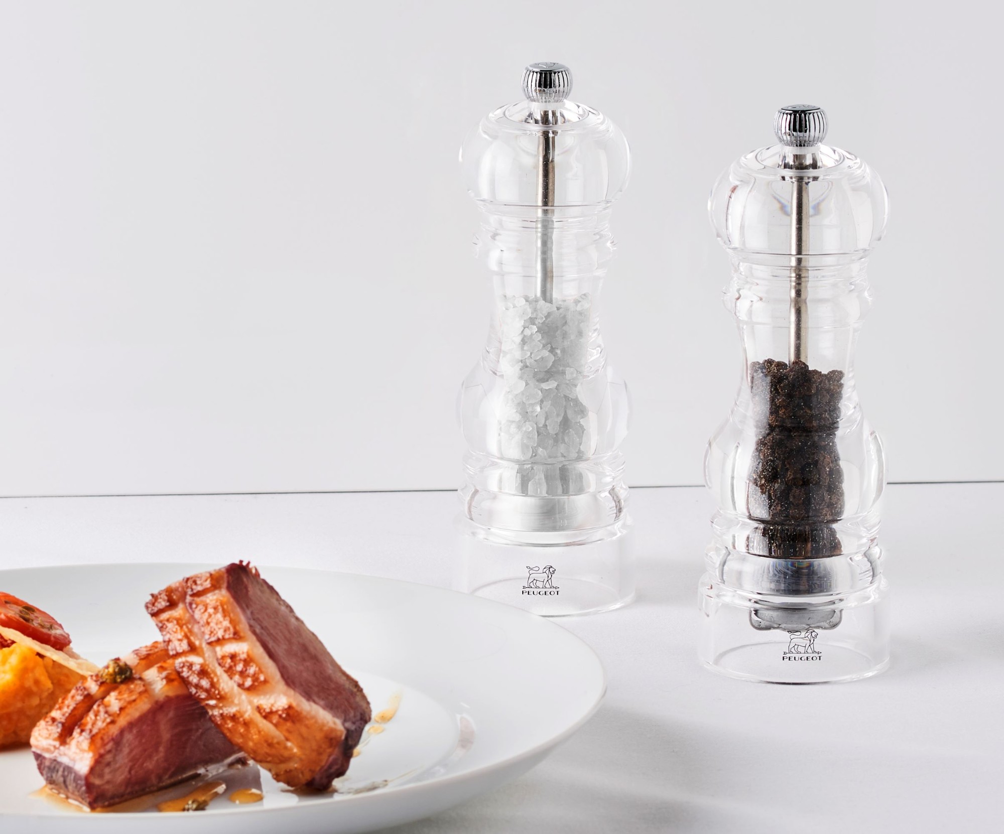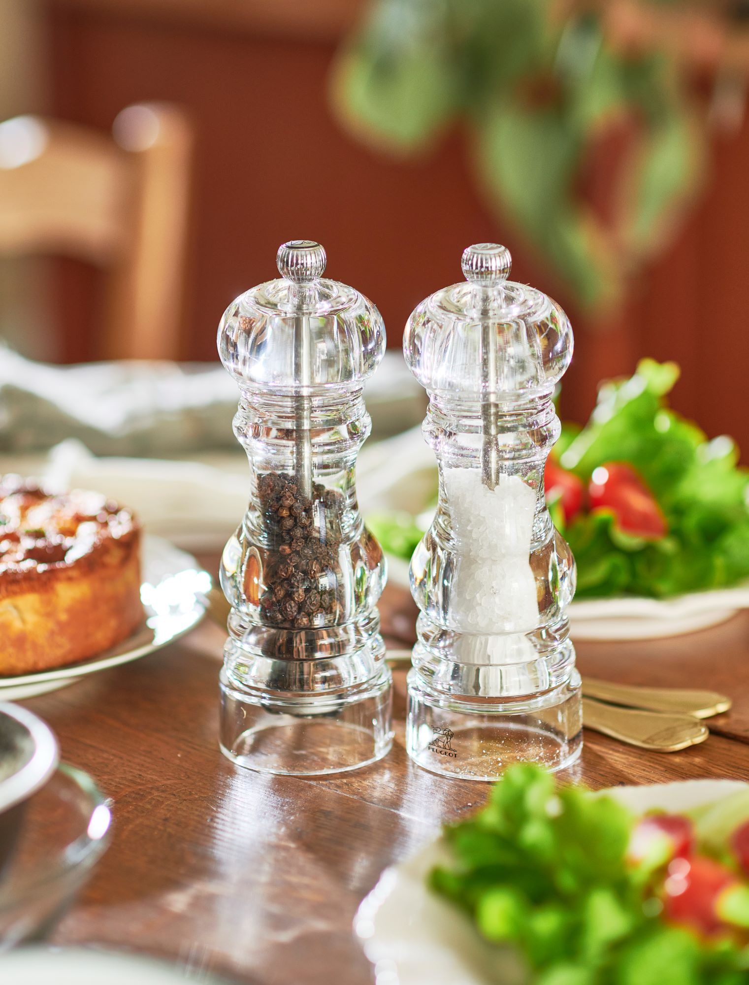 Ensemble de moulins à sel et à poivre, hauteur 18 cm, en acrylique, marque Peugeot