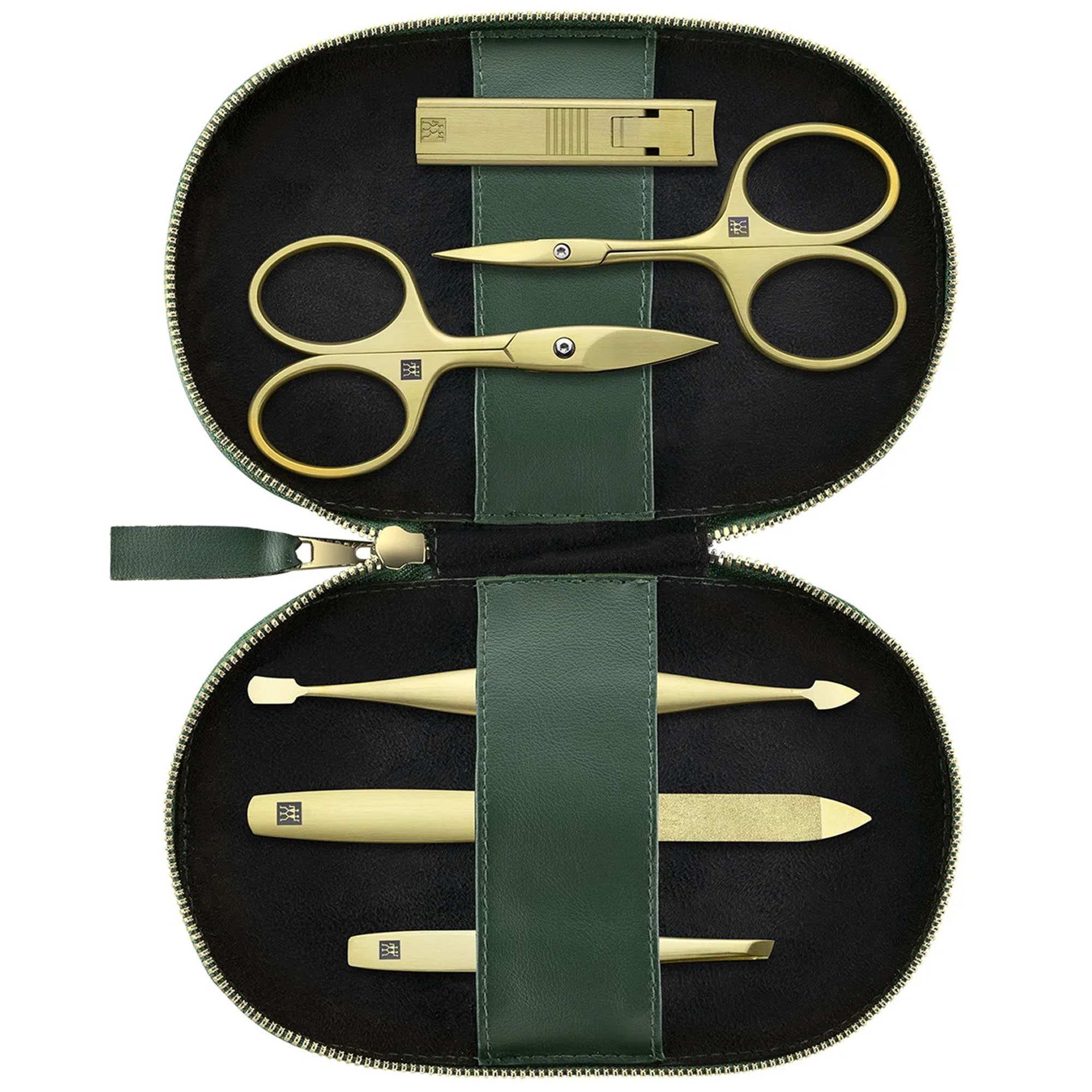 Set de manucure de 6 pièces produit par Zwilling, en acier inoxydable mat-satiné avec un revêtement PVD innovant.