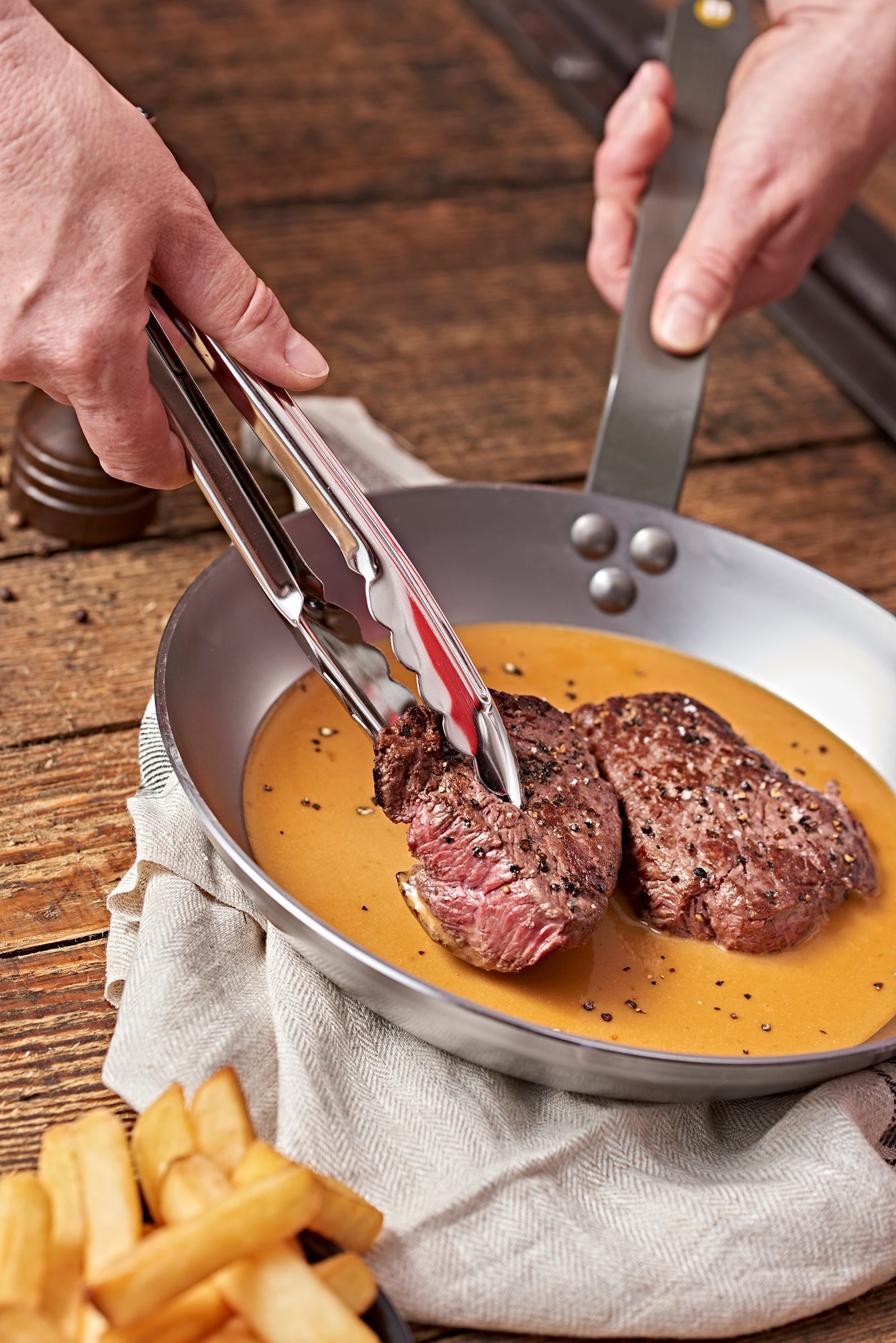 Acier inoxydable de qualité : l'effet élastique permet un service rapide, ainsi qu'une manipulation facile et sûre des aliments.