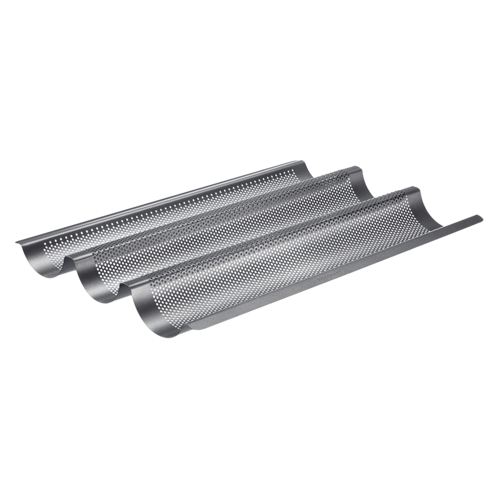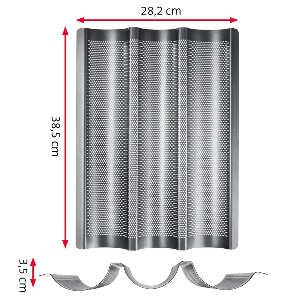 Baguettes fraîchement cuites - qui peut résister ? Avec la plaque à baguettes Westmark, vous pouvez cuire 3 baguettes en même temps. Le revêtement antiadhésif facilite le retrait des produits de boulangerie de la plaque, tandis que les perforations spéciales assurent une répartition optimale de la chaleur pendant la cuisson. Après utilisation, le plateau peut être nettoyé à la main.