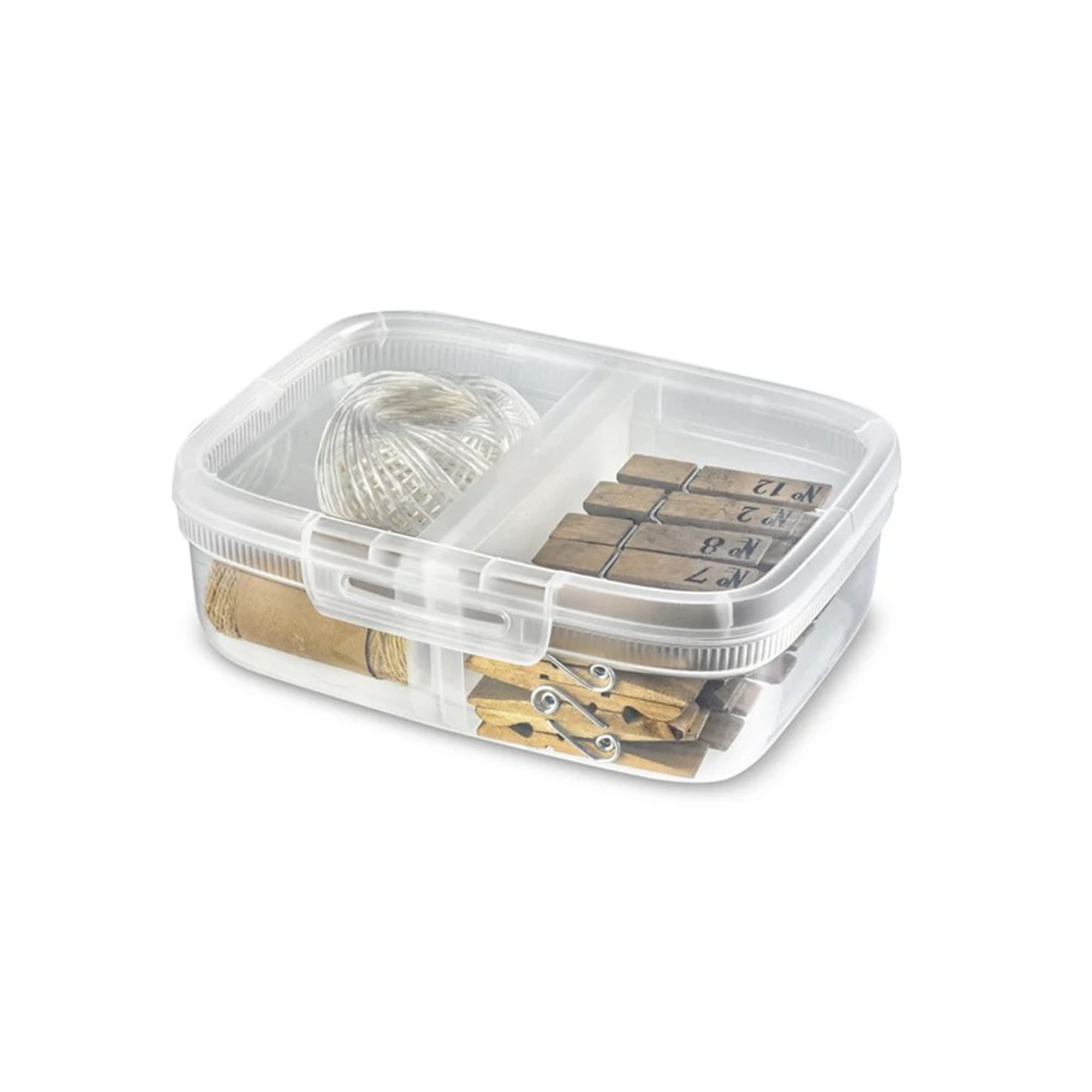 Récipient rectangulaire compartimenté pour la conservation des aliments « Snap Box », produit par Curver, en plastique.