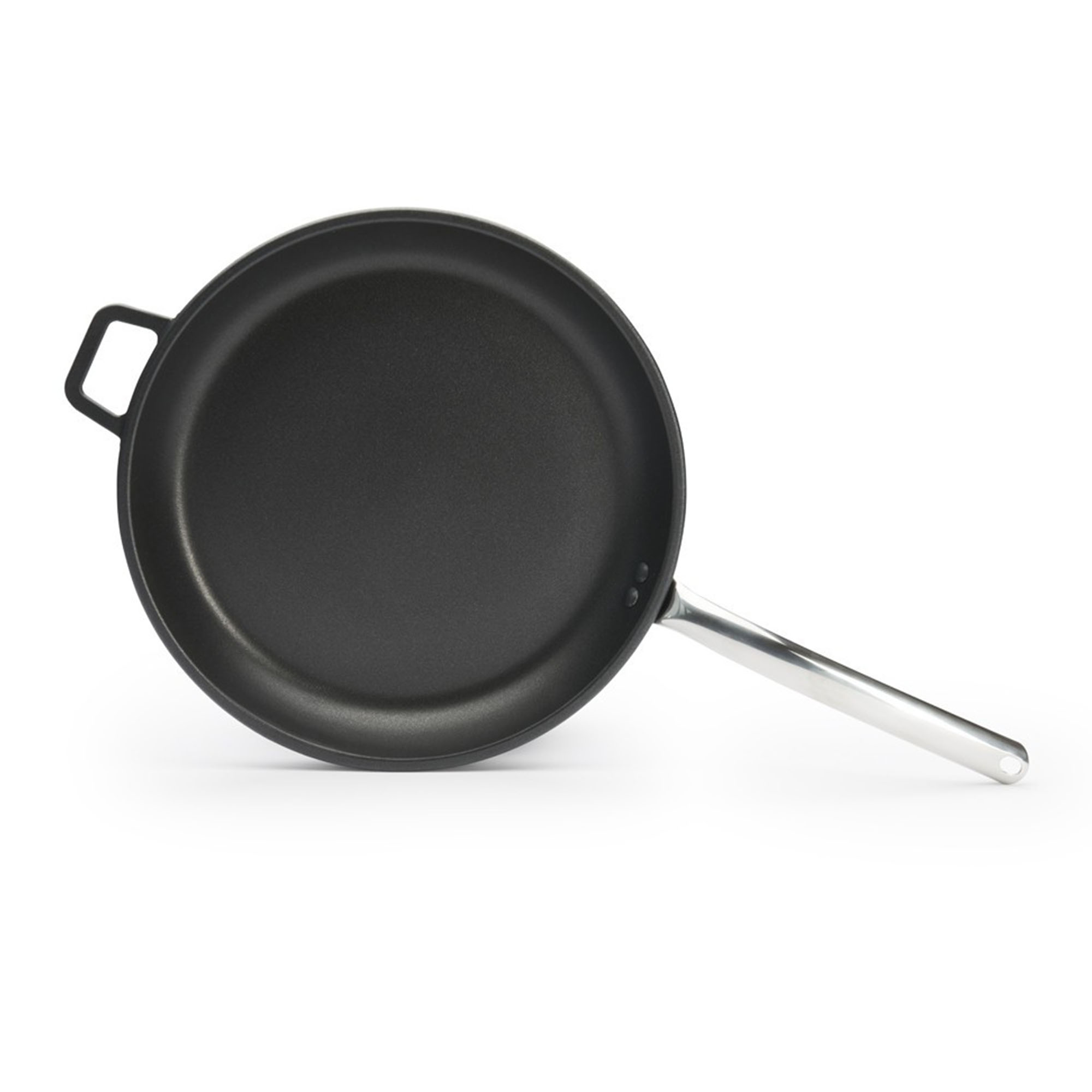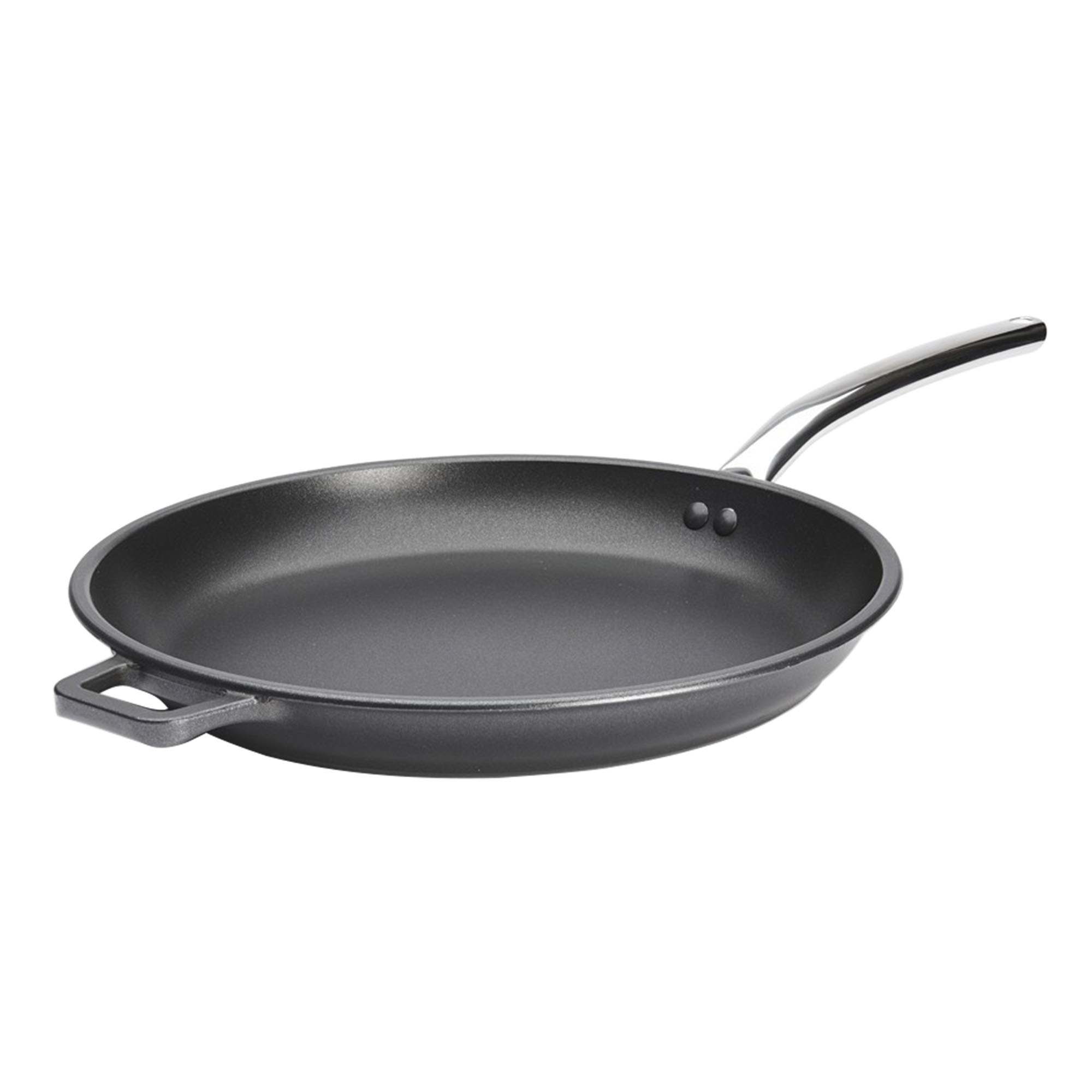 Pan friochta gairmiúil, arna tháirgeadh ag trastomhas de Buyer, 36 cm, airde 4.6 cm, déanta as alúmanam brú-teilgthe, le tiús 3 mm.