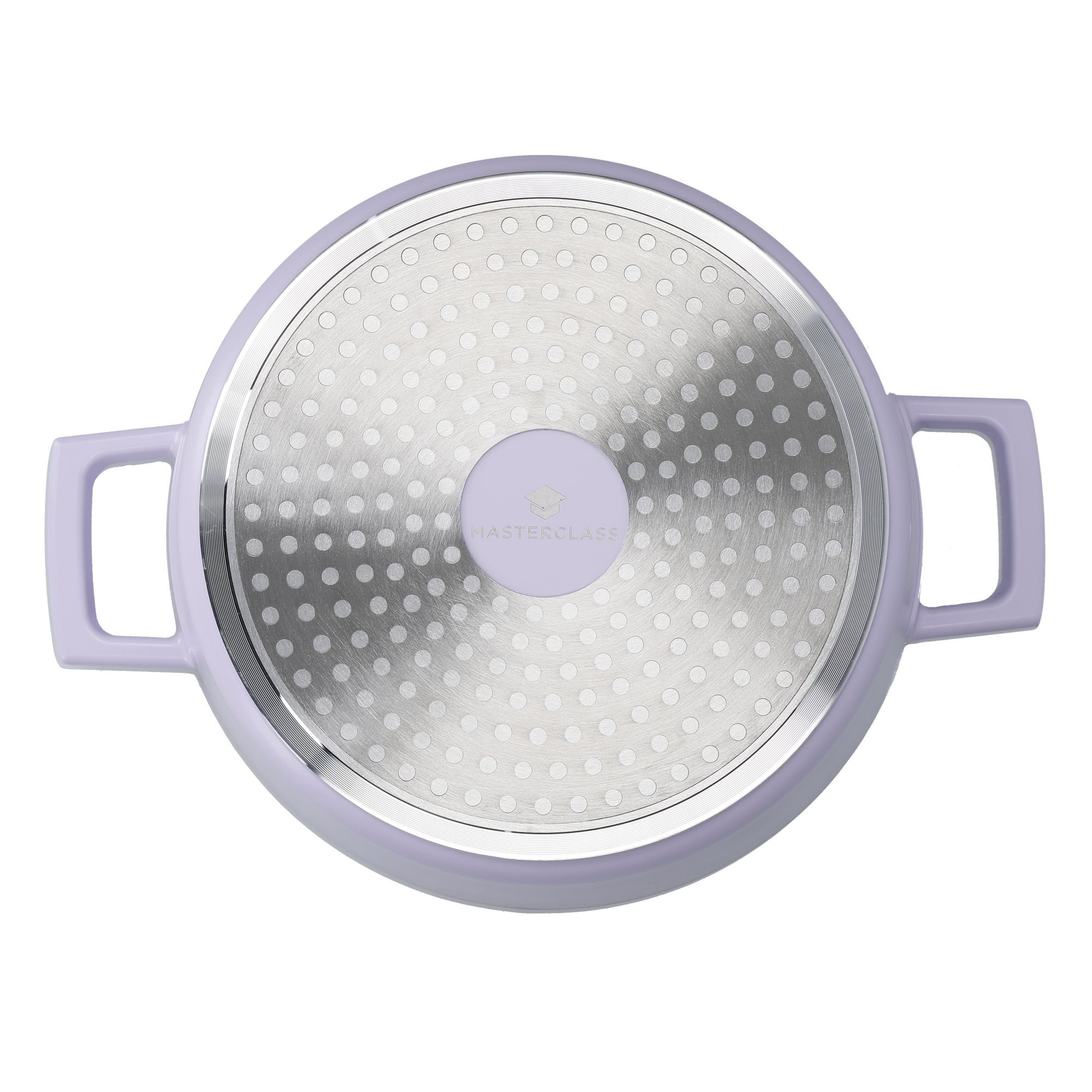 Mias casaróil le clúdach - branda MasterClass - Trastomhas 20 cm, toilleadh 2.5 l, airde 17 cm, déanta as alúmanam teilgthe, le bonn déanta as cruach dhosmálta. Cinntíonn alúmanam aistriú teasa is fearr ar gach cineál hob, lena n-áirítear ionduchtú agus san oigheann (suas le 200°C), le haghaidh cócaireachta tapa agus aonfhoirmeach.