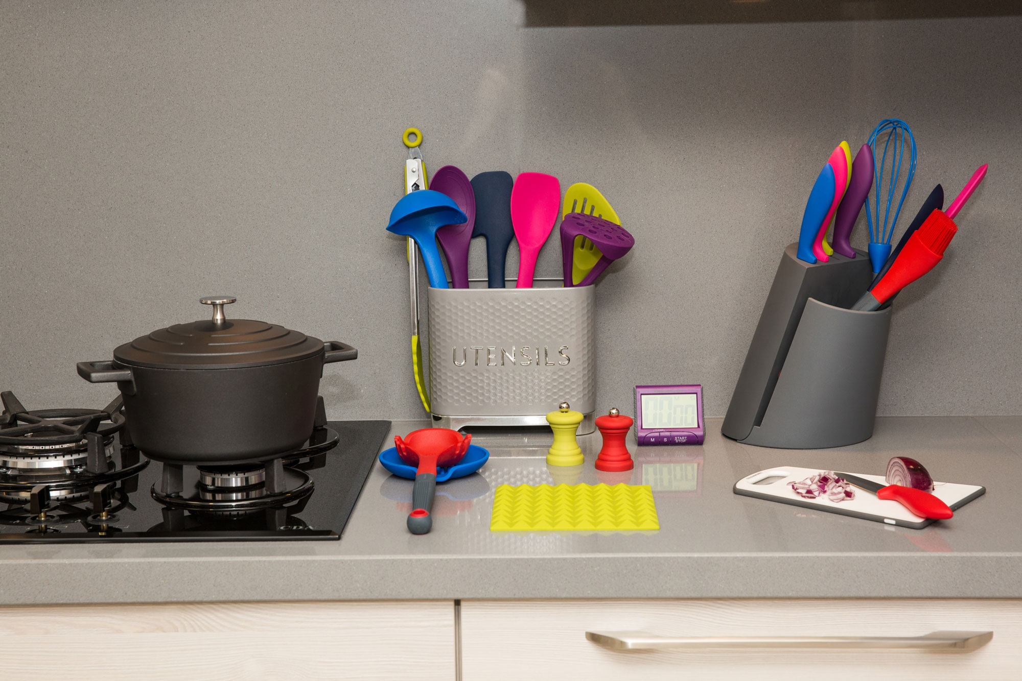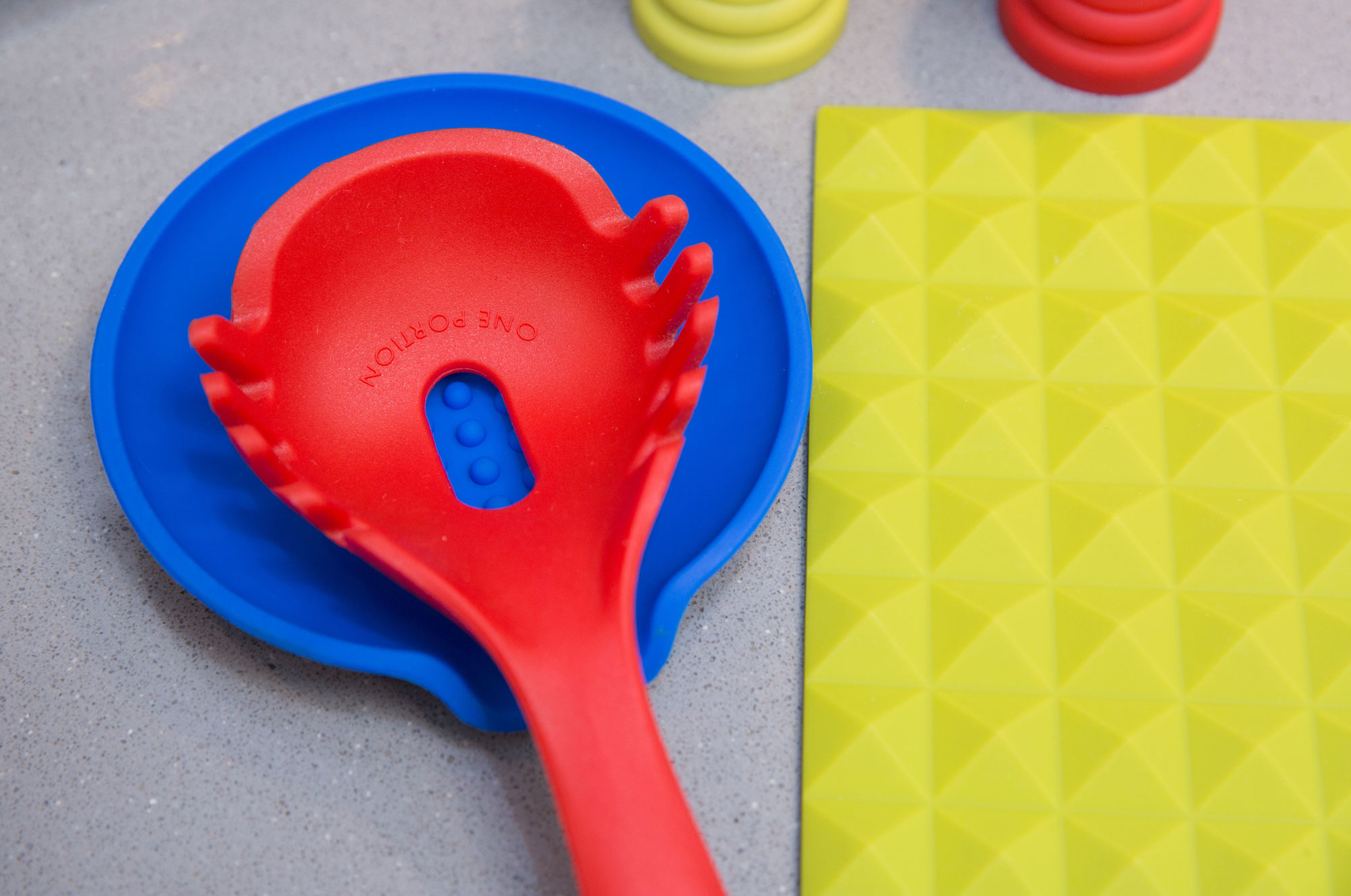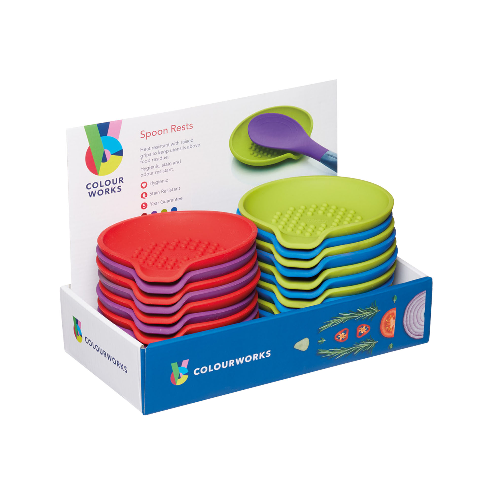 Scíth spúnóg, arna tháirgeadh ag Colourworks, trastomhas 12 cm, déanta as silicone.