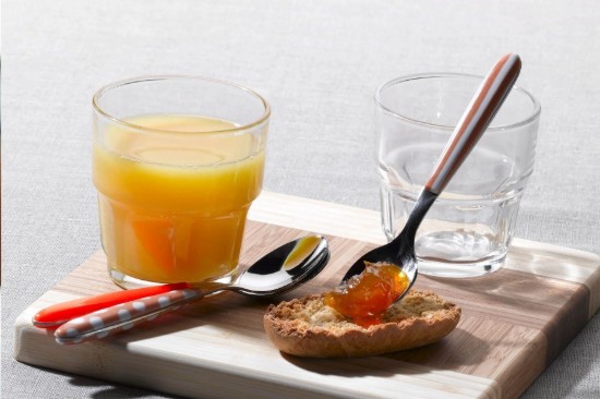 Tá tumblers uisce "Lola" riachtanach ar an mbord, agus ceadaíonn a gcruth beagán cónúil greim níos fearr. Tá na tumblers uisce stackable iontach chun uisce nó sú úr a sheirbheáil don bhricfeasta.