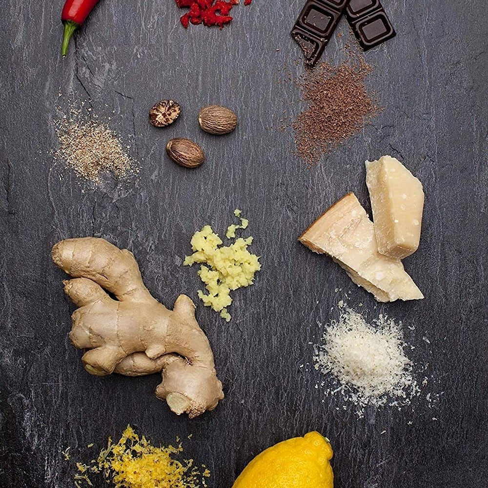 Ovaj ribež je idealan za ribanje korice citrusnog voća poput limuna, naranče, grejpa, limete itd. ili za ribanje tvrdih sireva poput parmezana, pecorina romana ili asiaga. Također možete lako naribati začine poput muškatnog oraščića i cimeta, kao i češnjaka ili đumbira. Kupci su također preporučili korištenje ribeža za uklanjanje zagorenih dijelova s kolačića ili svježe pečenog kruha.