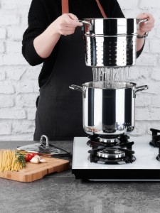 Posuđe se može slagati tako da se namirnice koje zahtijevaju duže kuhanje mogu staviti na dno, a one koje zahtijevaju kraće vrijeme kuhanja na vrh.