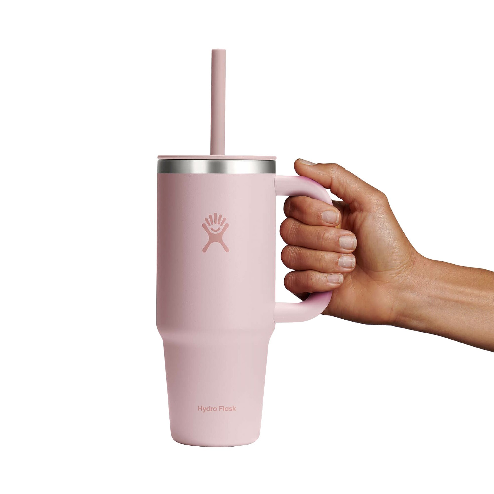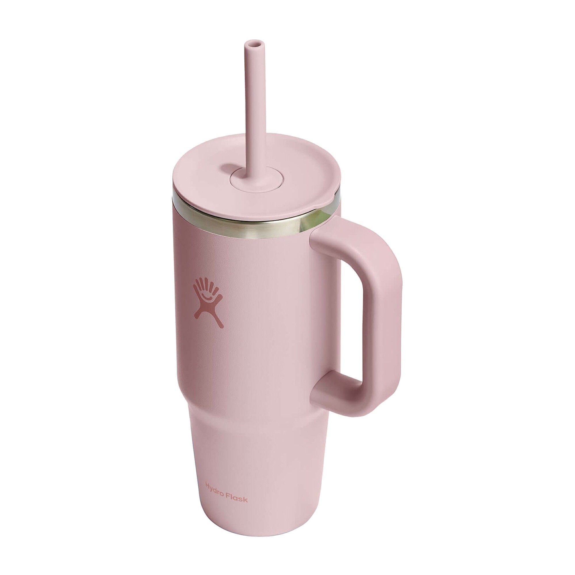 “All Around Travel” toplinski izolirana čaša s ručkom i slamkom, kapaciteta 710 ml, izrađena od nehrđajućeg čelika 18/8, proizvođača Hydro Flask.